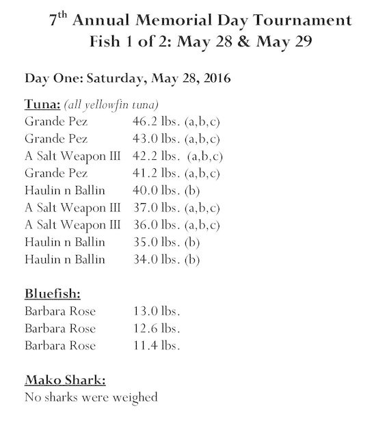 Today was day 1 of the Ocean City Marlin Club Memorial Day Tournament and it was a pretty busy day at the scales at Sunset Marina in West Ocean City.  Here’s what the board looks like after one day of fishing.