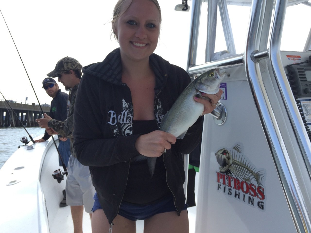 Captain Jeff Coats of Pitboss Fishing had a good day with the light tackle fish today fishing the route 50 bridge and the south jetty.  Captain Jeff put his crew on bluefish, hickory shad and throwback rockfish and everyone had a great time.