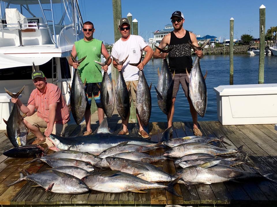 Just one day after the first white marlin of the season was caught by Andy Urban on board the In The Black fishing out of Sunset Marina, Bo Appel fishing on the Fish in OC charter partner Boss Hogg with Captain Brian Porter also out of Sunset Marina caught and released the first blue marlin of the season.  The crew also caught 12 yellowfin tuna on ballyhoo and spreader bars in the Norfolk Canyon.  Here are some awesome shots of their fish!13321777_10153702318896448_6584149851454495286_n 13335791_10153702318516448_5765511587643037754_n 13330949_10153702318621448_1250940283467580576_n 13226766_10153702318981448_5519112976236257206_n