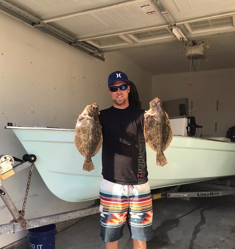 Cody Presnell caught these two keeper flounder in the Thorofare this afternoon…..on the same rig!