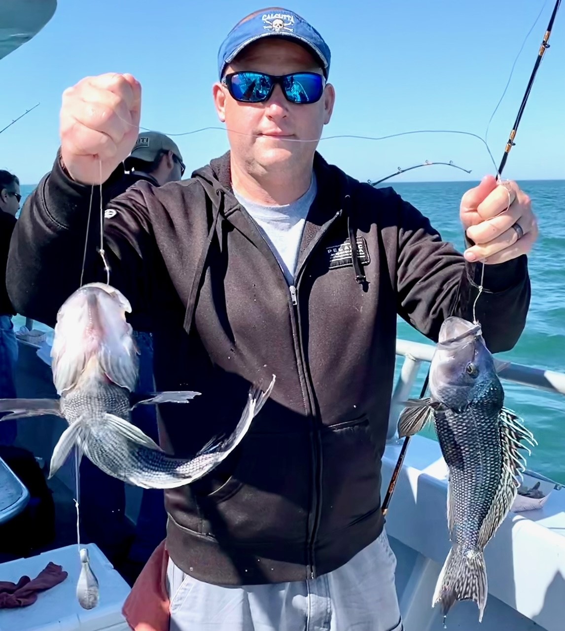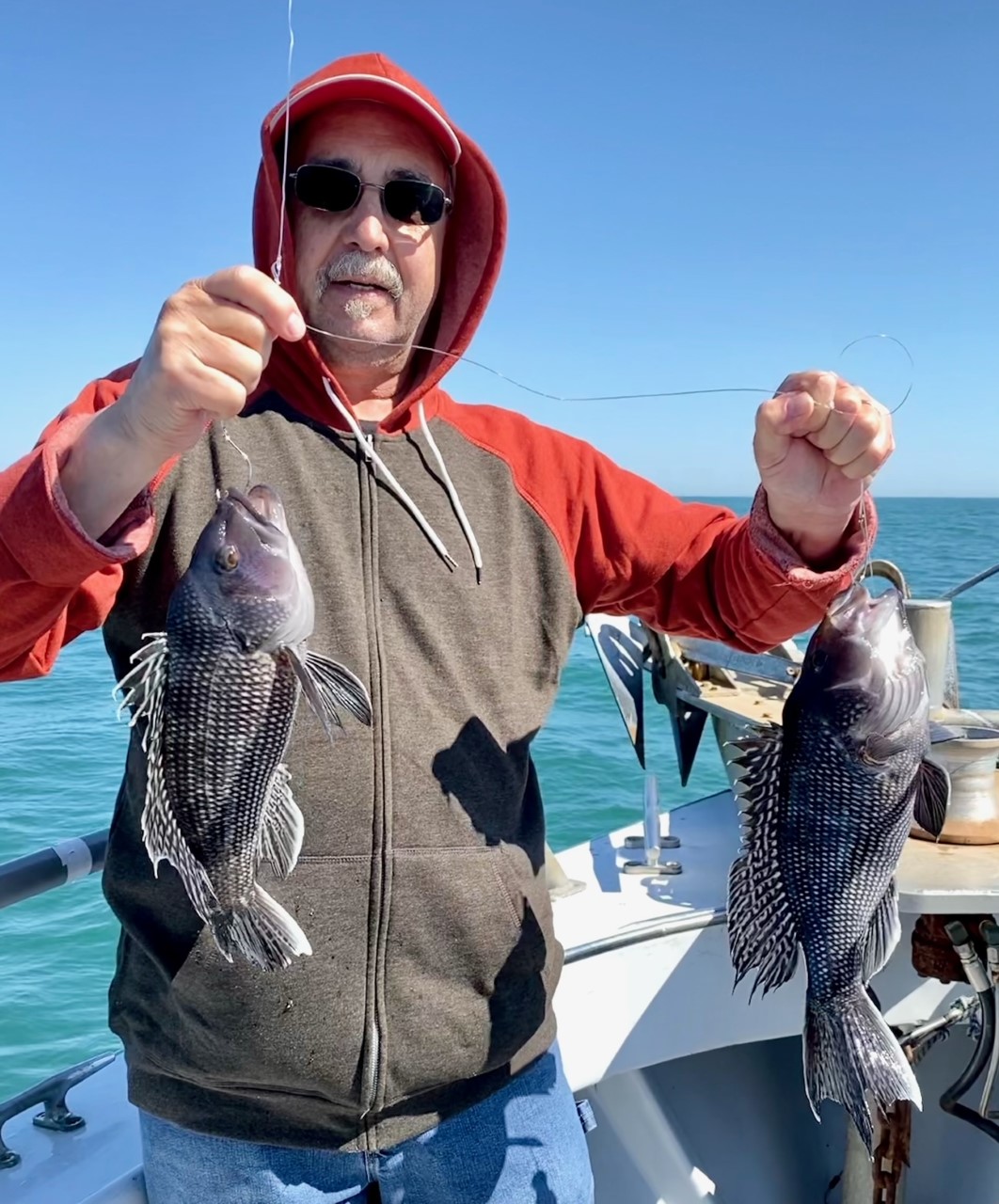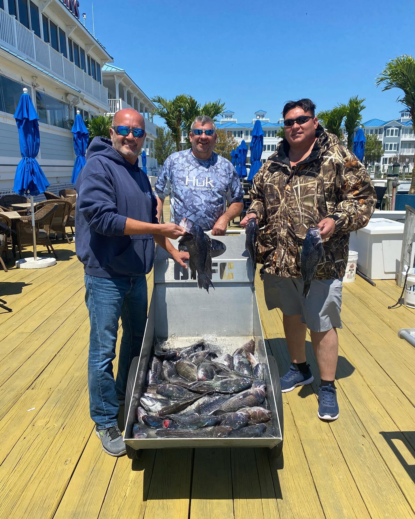 Sea bass fishing was a little better today than it was yesterday and anglers were happy to see that. Captain John Prather of Ocean City Guide Service had a great day on the bass using Otter Tails for bait and had some quality fish.