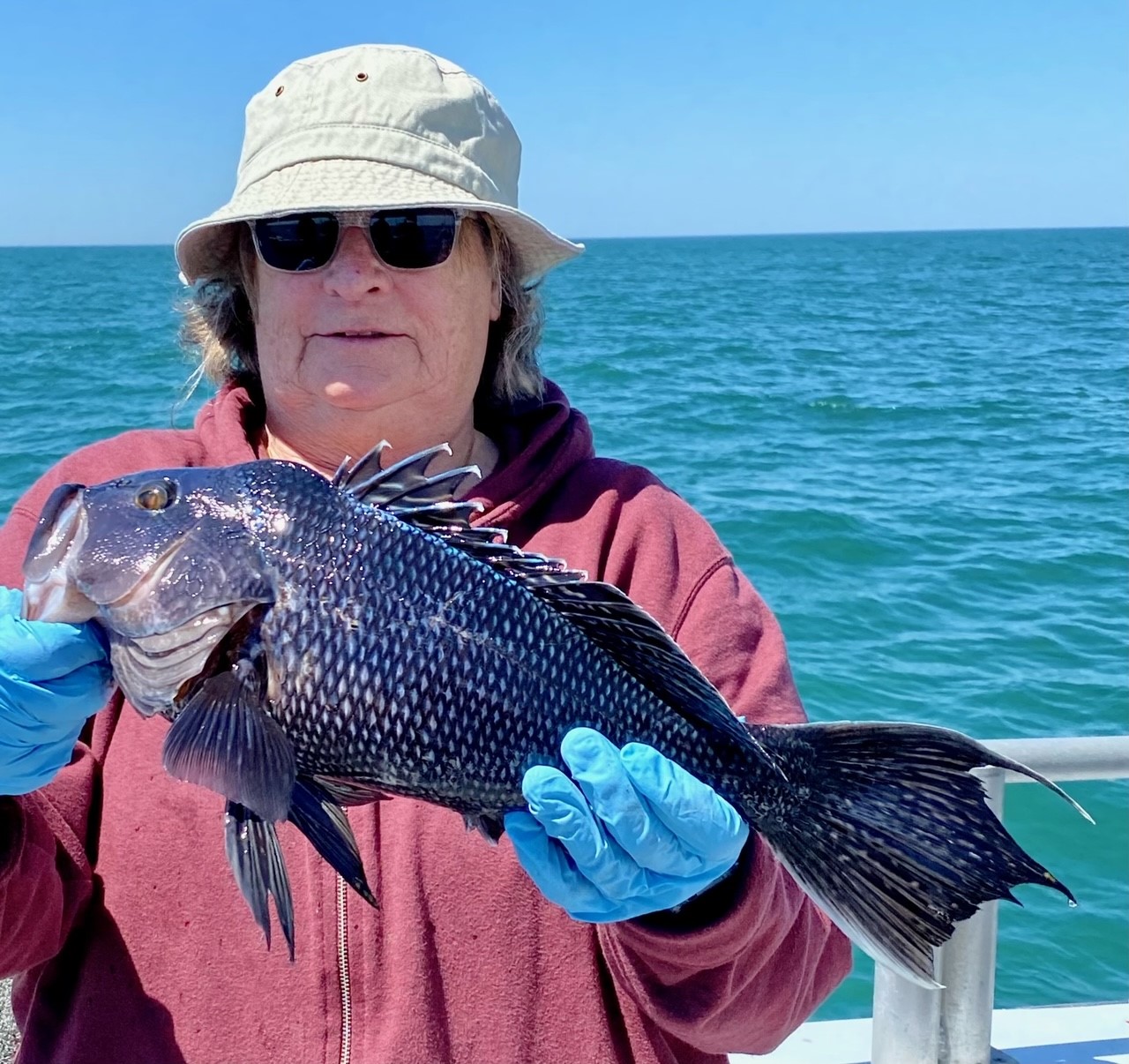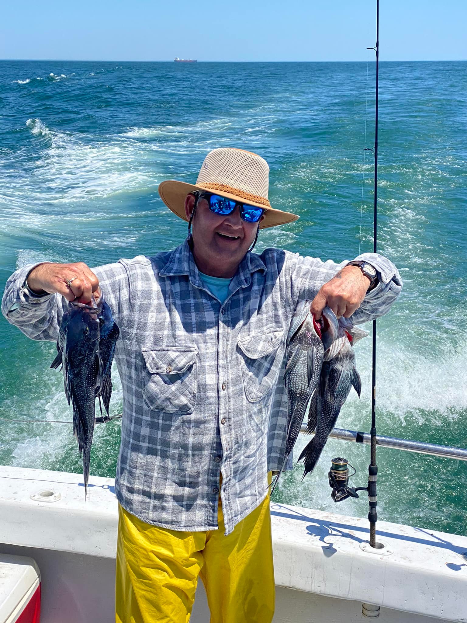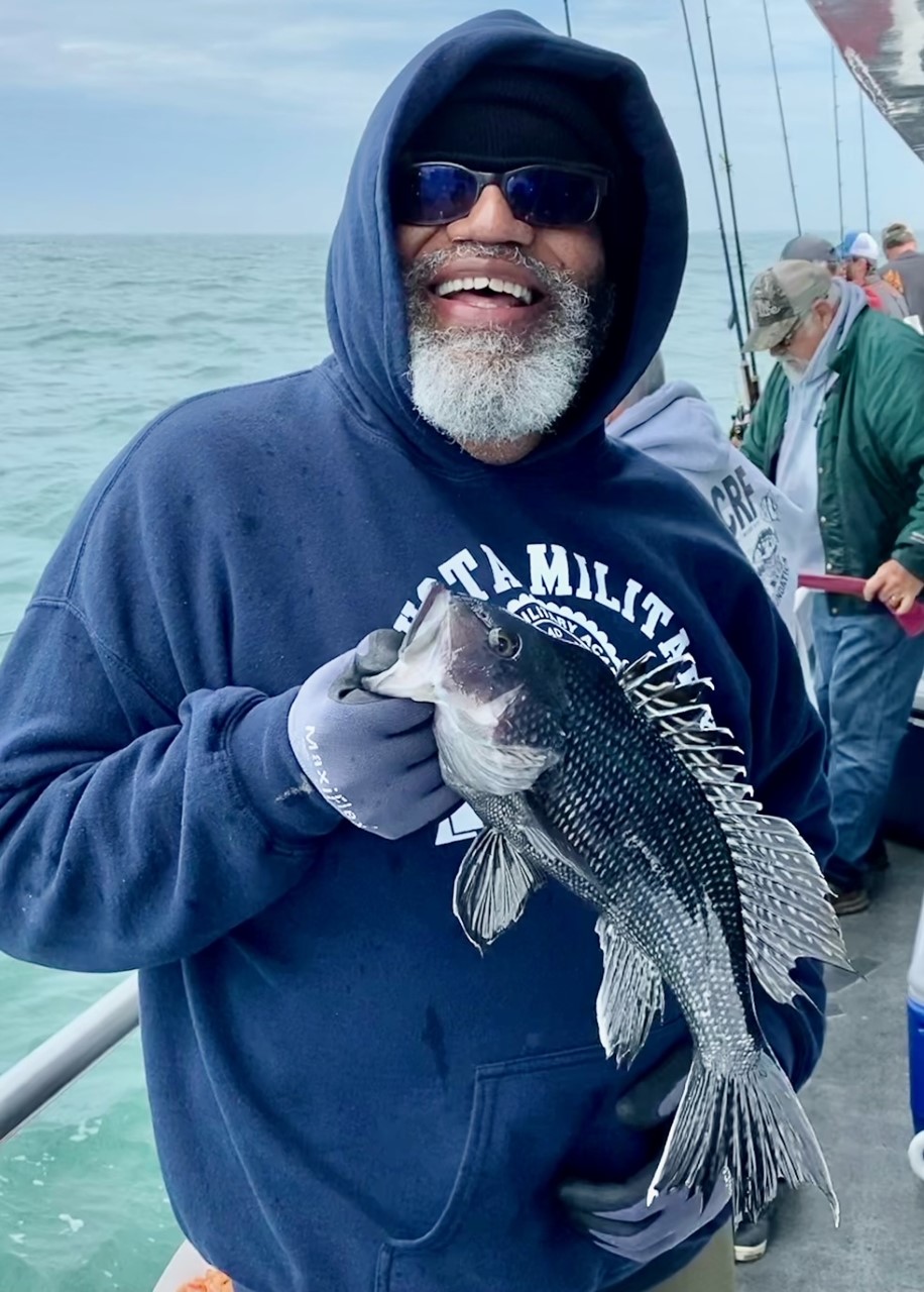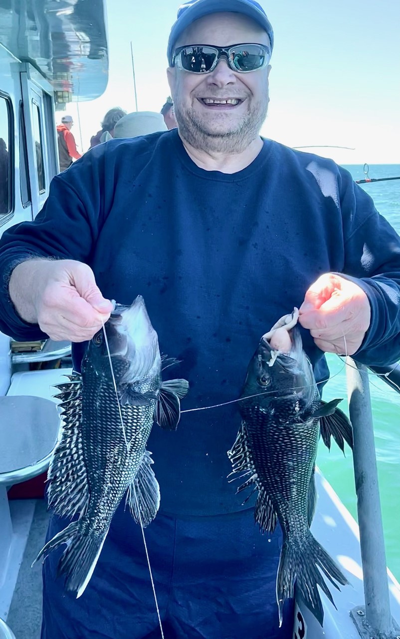 Captain Monty Hawkins of the Morning Star enjoyed today’s awesome weather and today’s sea bass bite.