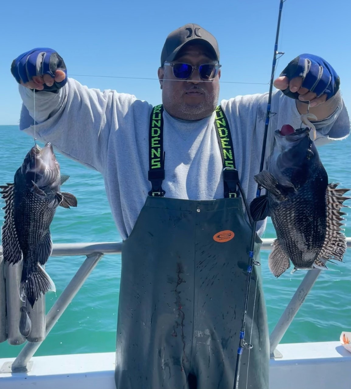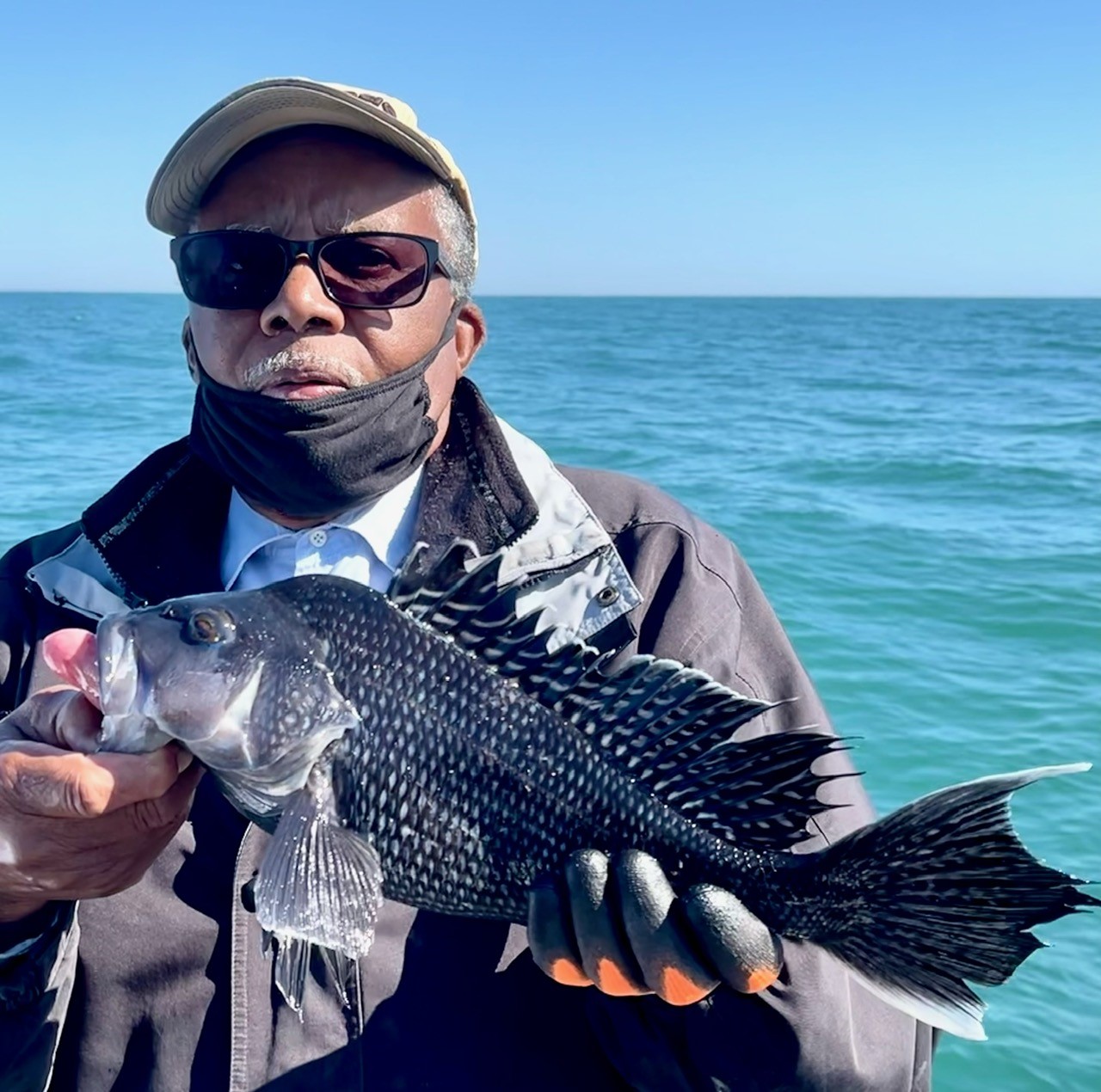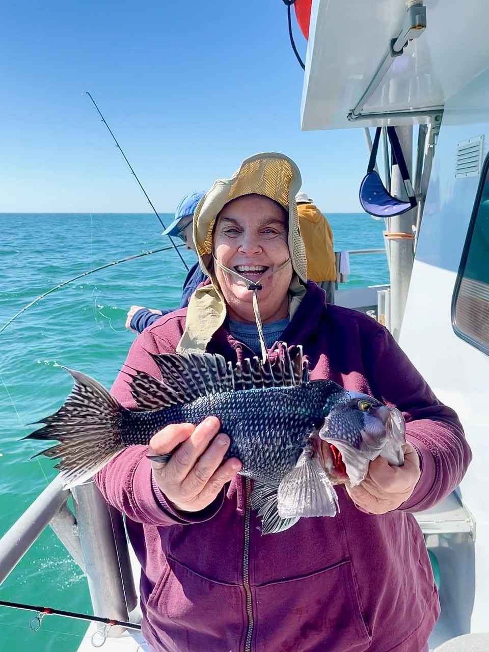 Captain Monty Hawkins of the Morning Star enjoyed today’s awesome weather and today’s sea bass bite.