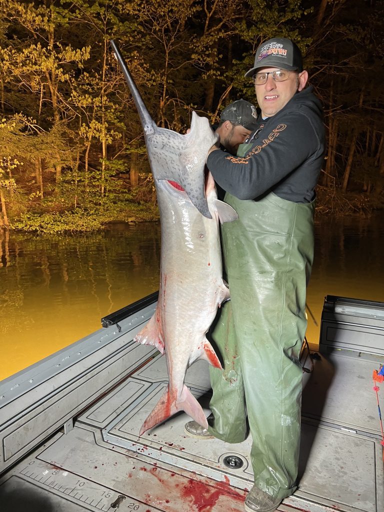 Captain Marc Spagnola of Dusk to Dawn Bowfishing wasn’t able to fish around here this week so he took a little trip to Kentucky where he was able to scratch paddlefish off of his bowfishing list.