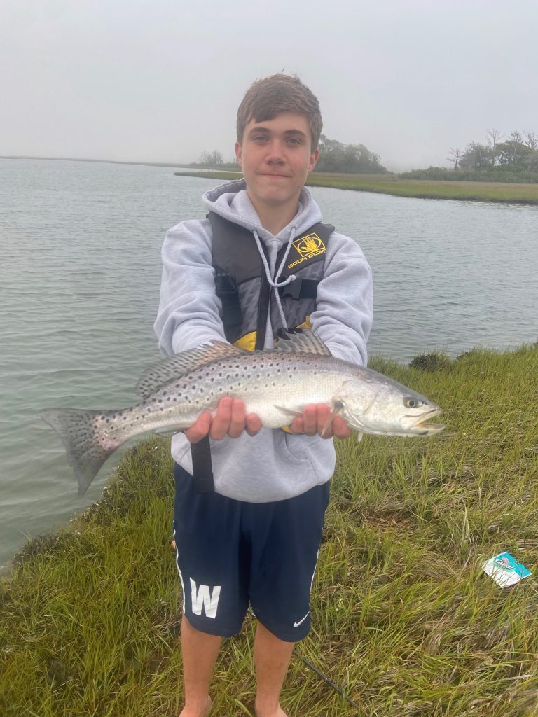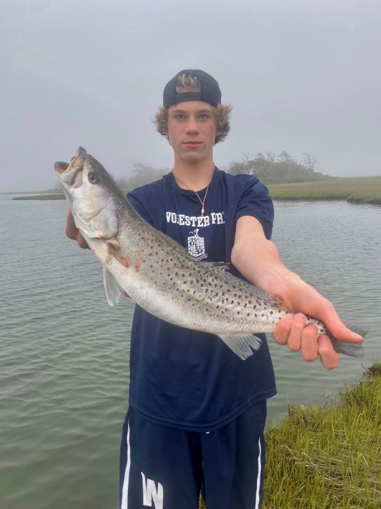 Dillon Scopp and Drew McCormick did a little fishing this afternoon right after their championship lacrosse win with Worcester Prep and had some awesome luck with some very nice speckled trout and some short rockfish.  The guys used a YoZuri “minnow” and the Fish in OC Thing a Ma Jig and put the hook in some nice ones!