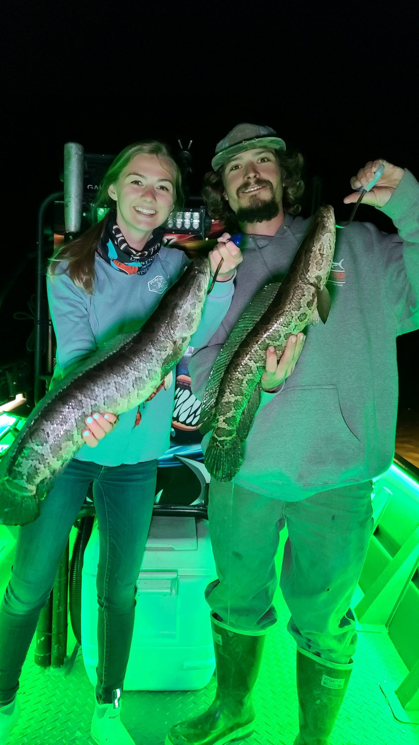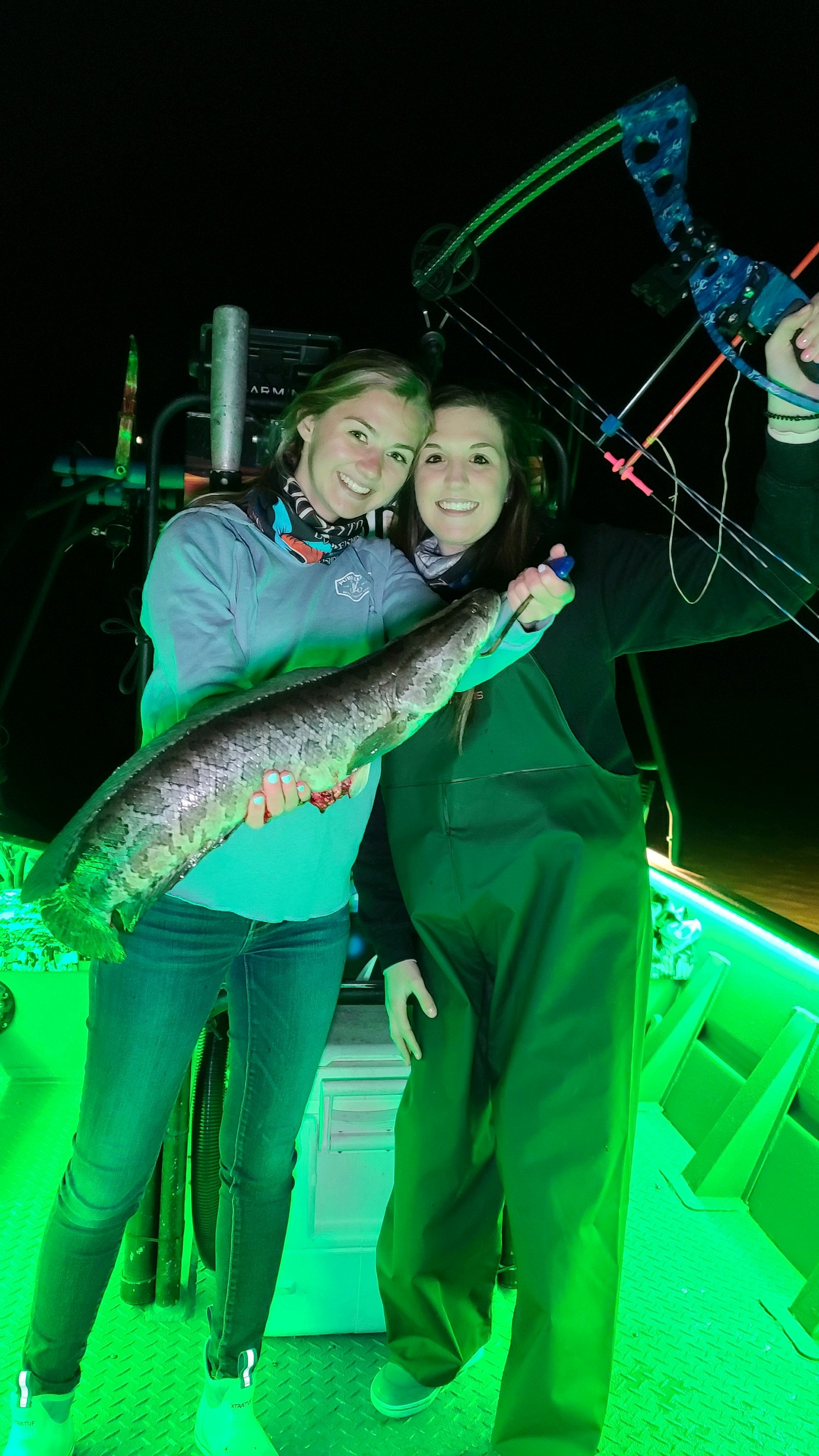 Captain Marc Spagnola of Dusk to Dawn Bowfishing is back on the water shooting stuff and last night he had an epic trip with the invasive Northern snakehead. Captain Marc had some great shooters on board last night and they hit their mark (no pun intended) on several very nice snakeheads. If you like bowfishing in a very cool setting for some good eating fish this is a trip for you.
