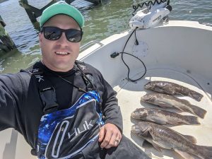 Blake Gunther may have gone flounder fishing today if he had known the first fish of the season was back in the bay, but he had a good day of fishing nonetheless.  Blake took a solo trip and had his limit of four tasty tautog.
