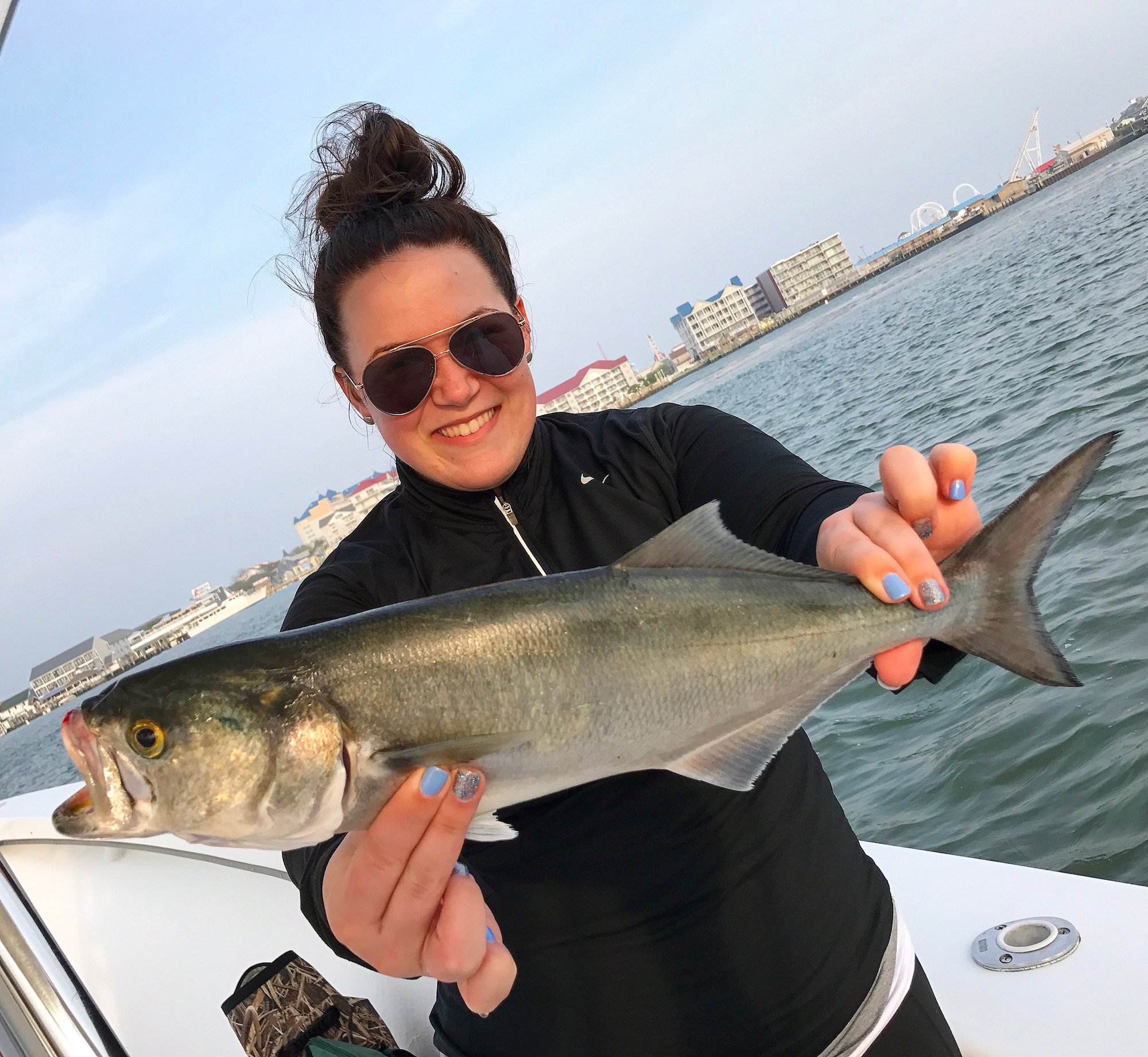 We had the warmest day of the year so far in Ocean City with temperatures climbing into the 80s. There was a pretty stiff breeze this morning, but that laid down after lunch and it was sunny and warm so there were lots of boats out on the water and lots of anglers bending their rods.