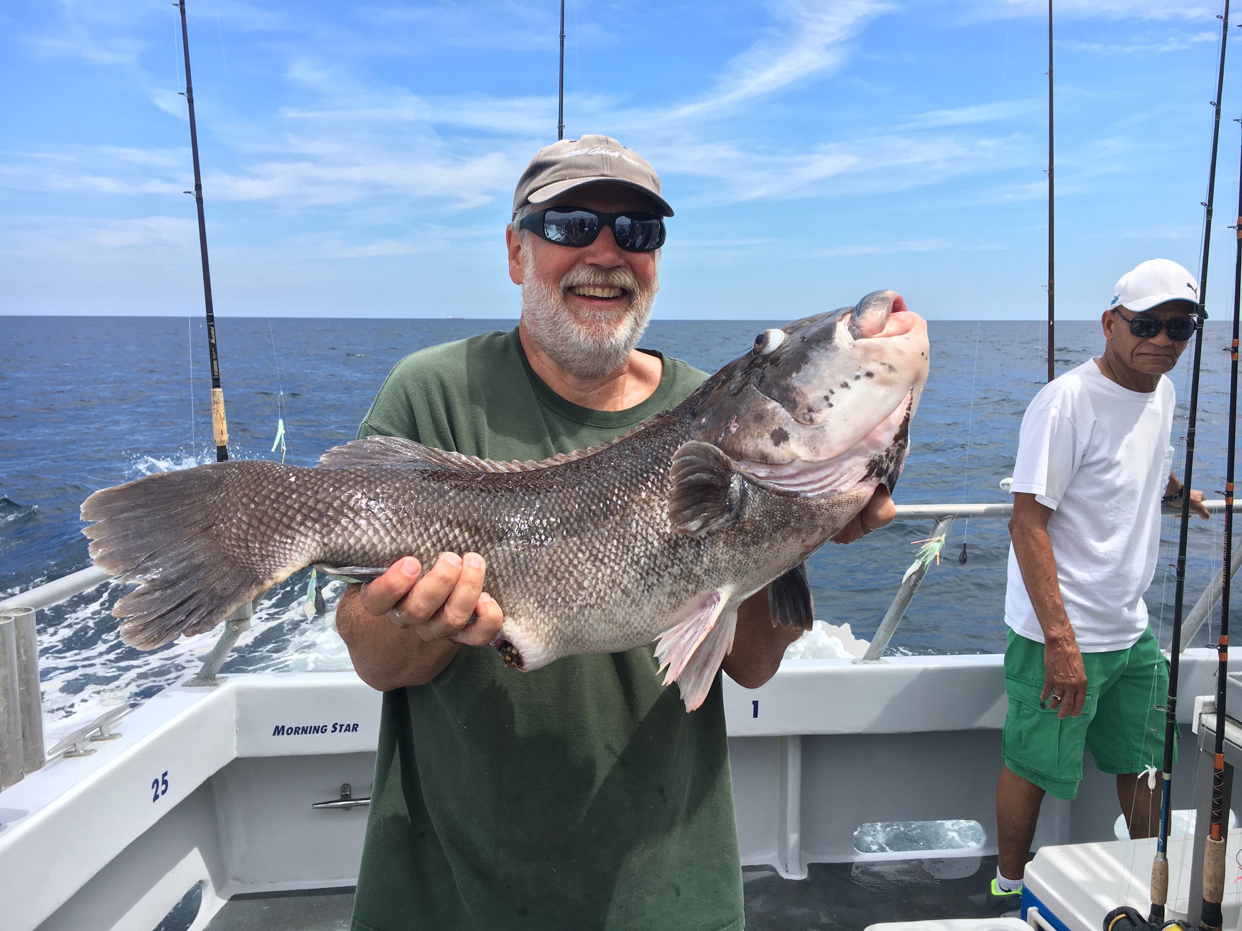 I got a report from my buddy Wes Pollitt from the Morning Star with Captain Monty Hawkins that I’m not used to hearing in August. The first part of the report wasn’t too crazy….a young man caught a nice 6.5 pound flounder. The second part of the report was pretty remarkable. The local party boats don’t catch many tautog in the summer, and they rarely catch a big fish. Not only did the Morning Star have a tautog today, they had a big one….on a strip bait fishing for flounder. The angler initially thought that he was hung on the bottom, but after a fight of a couple of minutes and a couple of wrong guesses a huge tautog came to the surface. The big “tog” weighed 15 pounds and is definitely the biggest tautog I’ve seen caught this time of year.