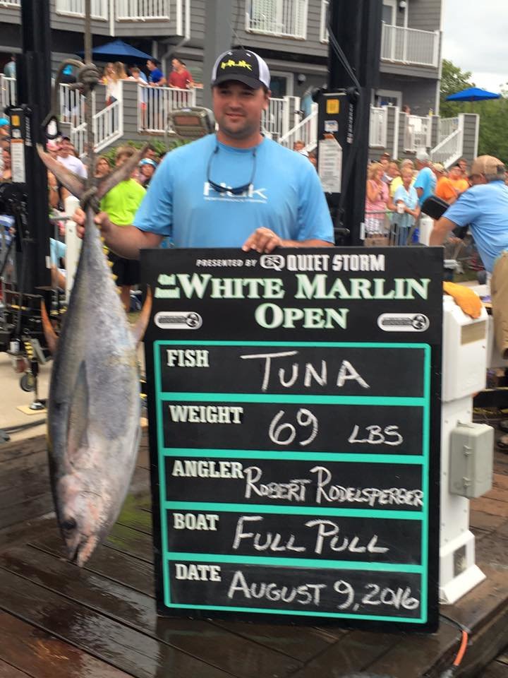 The third place tuna is a nice 69 pound yellowfin caught by Robert Rodelsperger. Robert was fishing on the Full Pull and his yellowfin is currently worth $2,000.