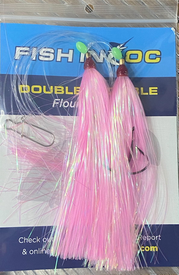 Our new Fish in OC rigs are in and they are on sale through midnight tonight only!! We’ve restocked the Croaker Smoker and Deadly Double rigs and we’ve added three new rigs to the arsenal. The Double Trouble is another Dale Timmons design with flounder in mind. This rig has two wide gap hooks and mylar skirts and comes in pink and green. The Doormat Destroyer is a live bait rig with one larger live bait hook for fishing with spot, mullet, bunker, big minnows or big Gulp baits for flounder, rockfish, trout, drum and more. And finally, the Double Header is a classic top and bottom rig for tautog, sea bass, sheepshead, triggerfish and other bottom feeders that has 50# mono and two Mustad 4011E hooks. I’ll have trade show specials this winter, but they will not be on sale on the website other than today. You can check them out and grab them at www.FishinOC.com/shop