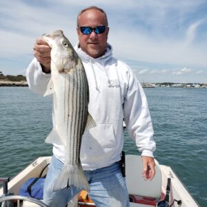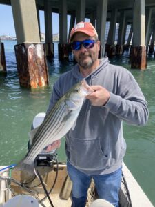 Big Bird Cropper had Shaun Flaherty and Bryan Mindte of Sunset Provisions on board today for some Roy Rigging and showed them a good time. The guys caught a bunch of throwback rockfish on Roy Rigs and caught two keepers while “dredging” at the route 50 bridge. Bird’s fish was 28″, and went back, and Shaun kept a nice 31″.