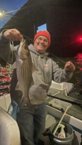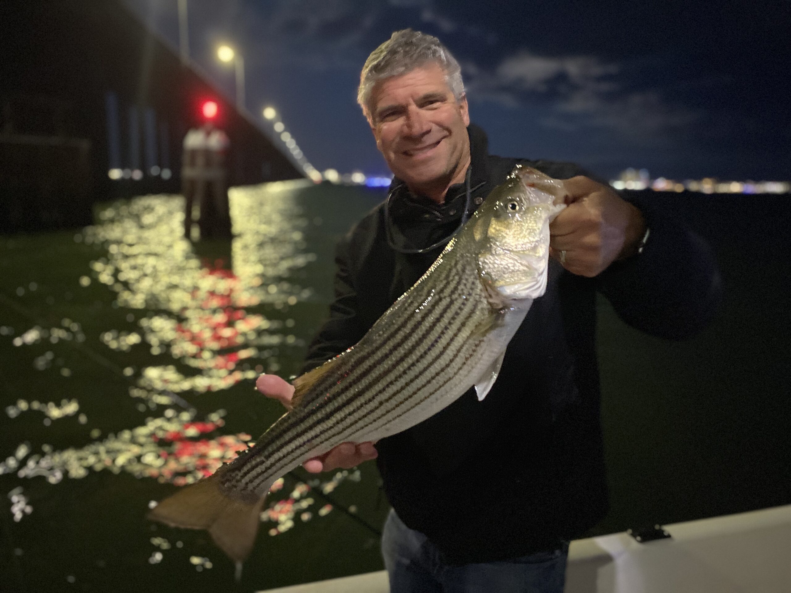 I had a fun night catching and releasing some rockfish last night at the route 50 bridge with Patrick Montague. We released several fish up to 22″ on Deadly Tackle Thing a Ma Jigs.