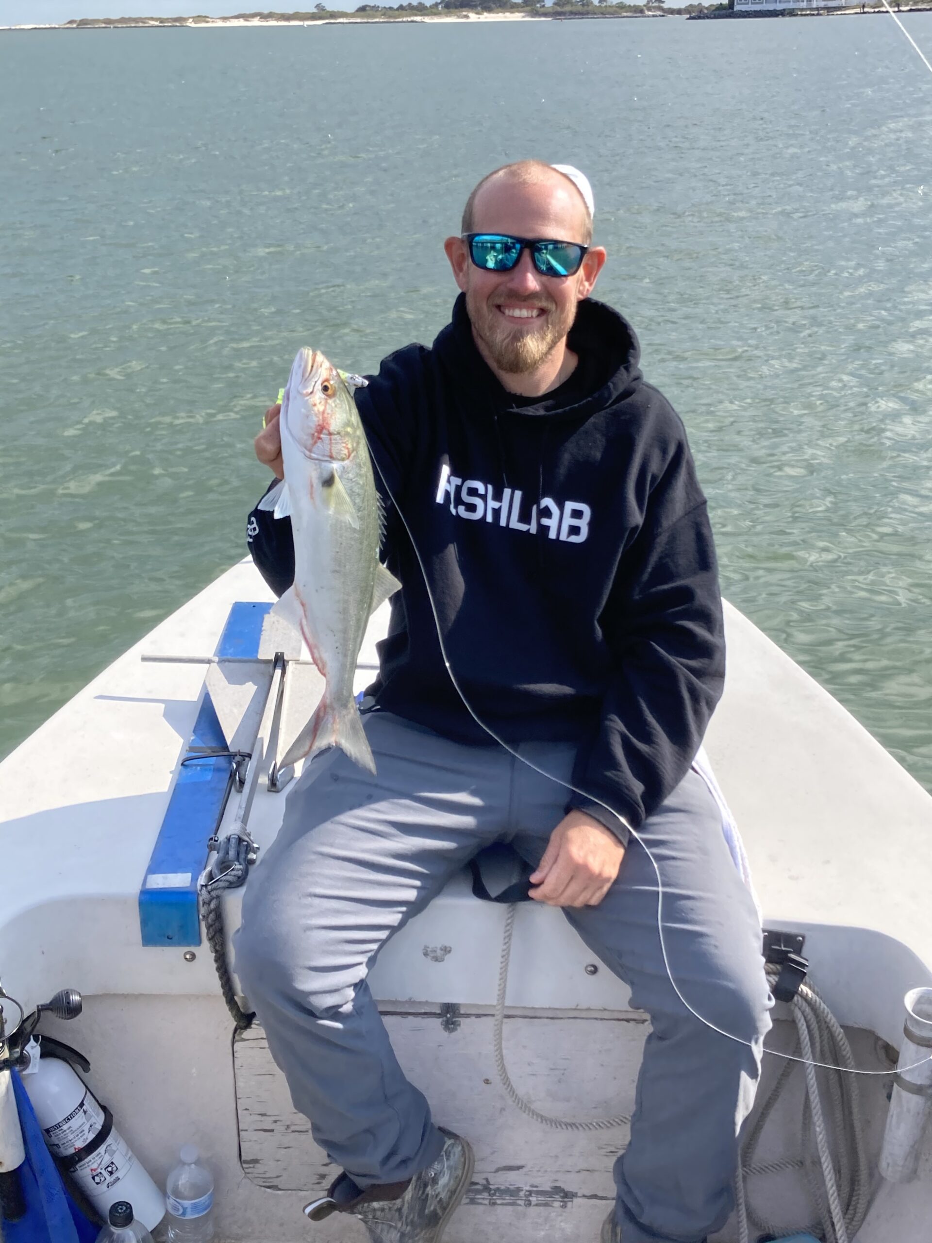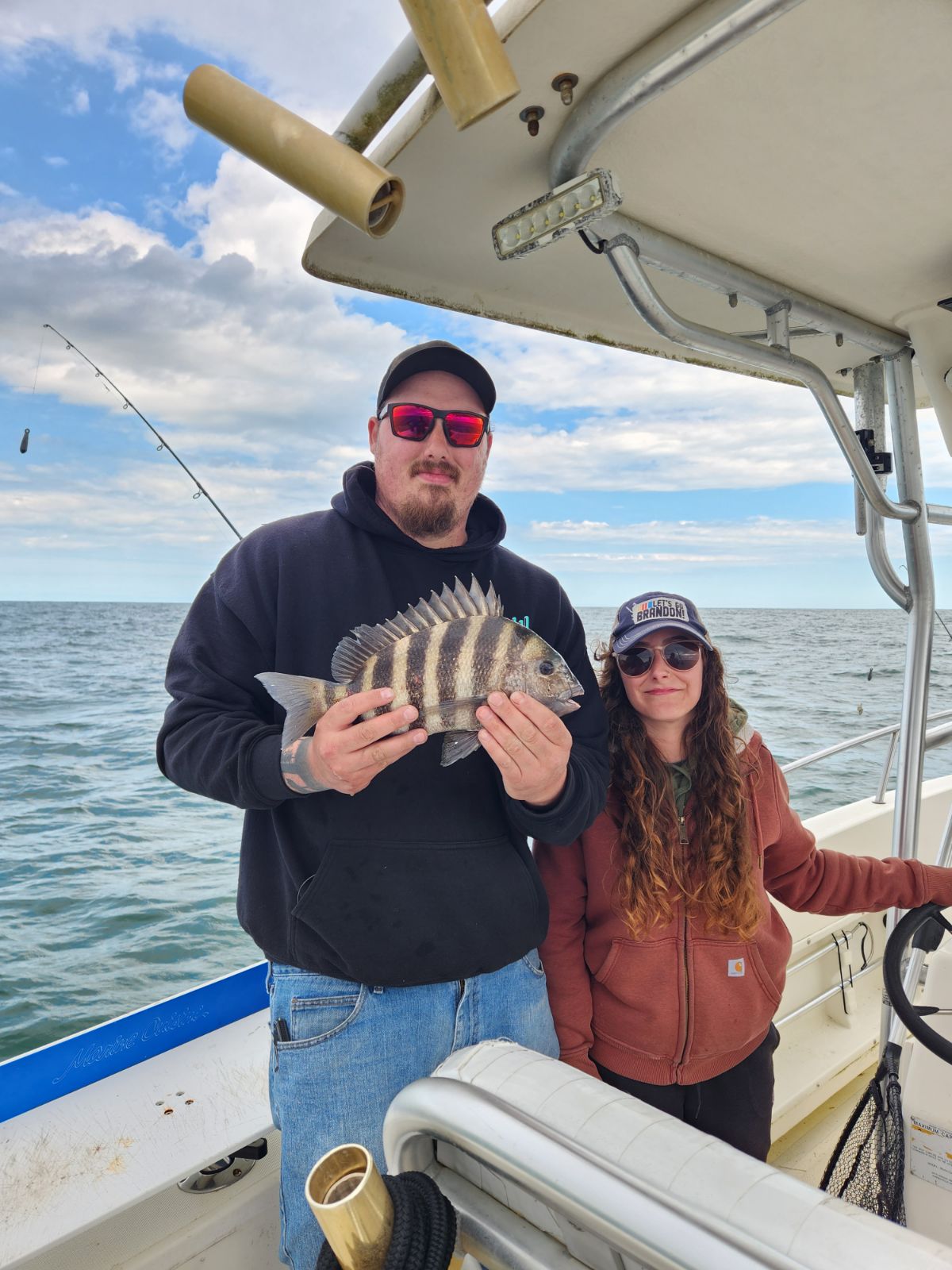 We had another first of the season today when Anthony Carrieri landed this 15.5″, 1.8 pound sheepshead while fishing with Tori Kramer. The first sheepshead ate a sand flea at the south jetty.
