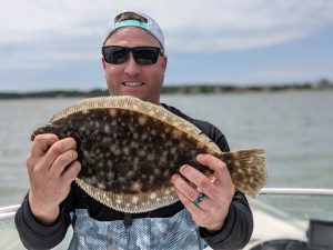 Flounder fishing in the back bay has been good in the clean water and today was another good day of fishing. Captain Jason Mumford of Lucky Break Charters had a great day with keeper flounder for everyone.