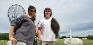 Wayne and Owen West treated mom Denise to a day on the water for Mother’s Day and her present was getting the skunk out of the new boat with this 19” flounder caught on our Deadly Double.