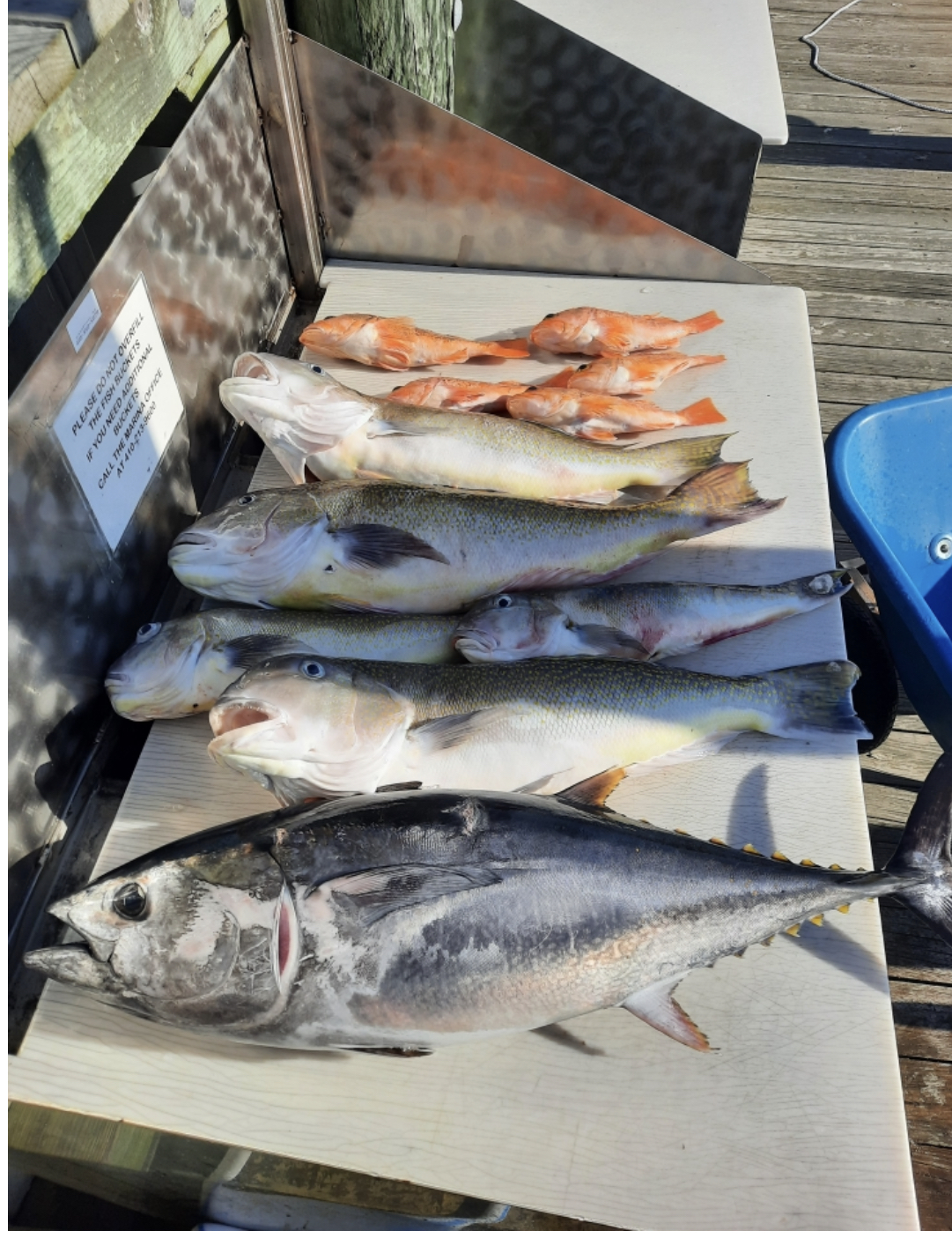 it was a couple of days ago, but the first tunas of the season hit the dock at Sunset Marina on Friday, May 7 when the crew of Keep ‘er Wet landed some bluefins outside of the Norfolk Canyon. The crew fished the 1,000 fathom line and went four for out of five on the bluefins keeping one for dinner. They also had golden tilefish up to 19 pounds.