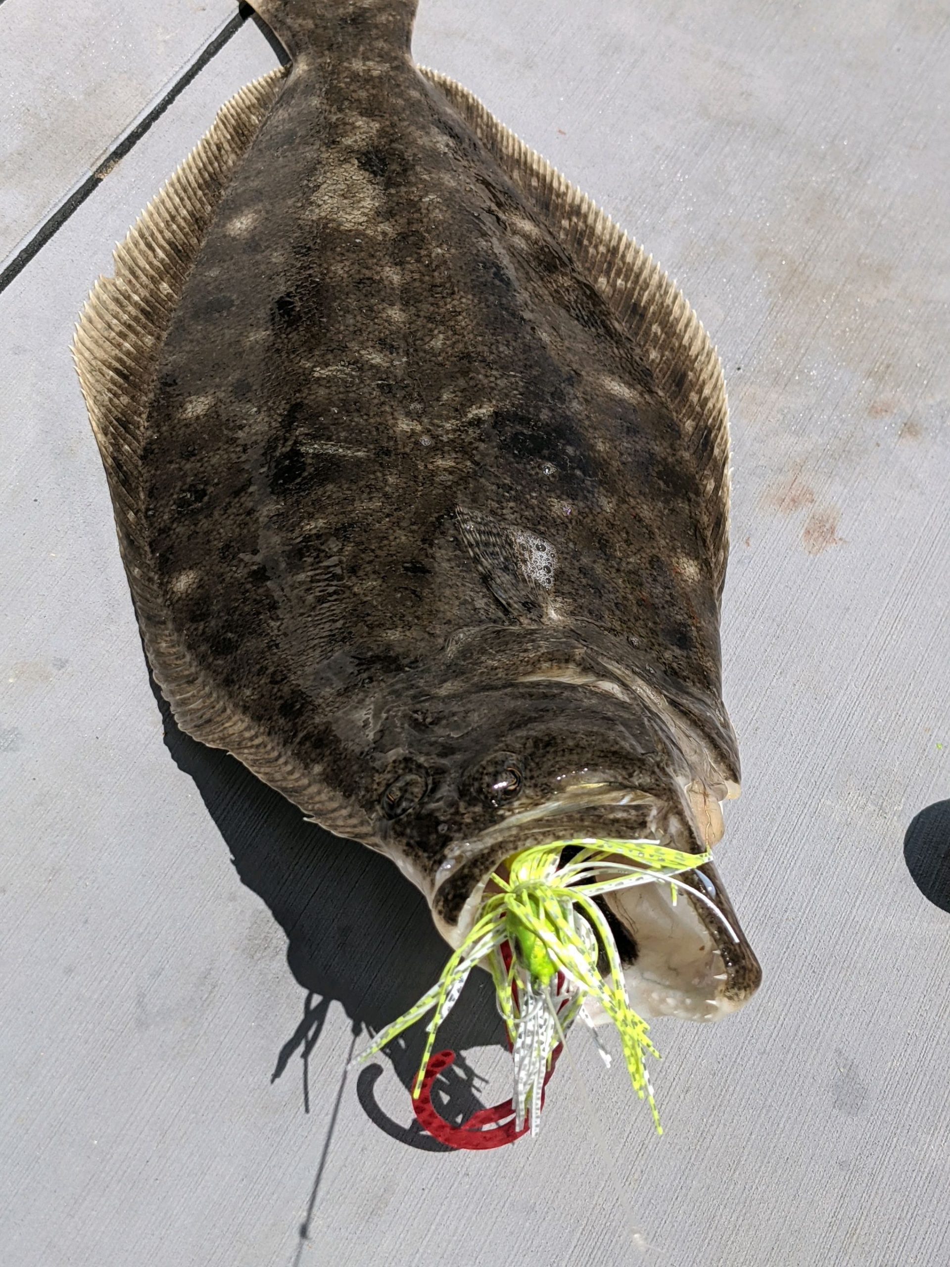 Blake Gunther and his Father in law fished the Thorofare today with the new Fish in OC Thing A Ma JIG and caught a bunch of flounder. The guys caught 10 fish in just about an hour and a half with one nice keeper.