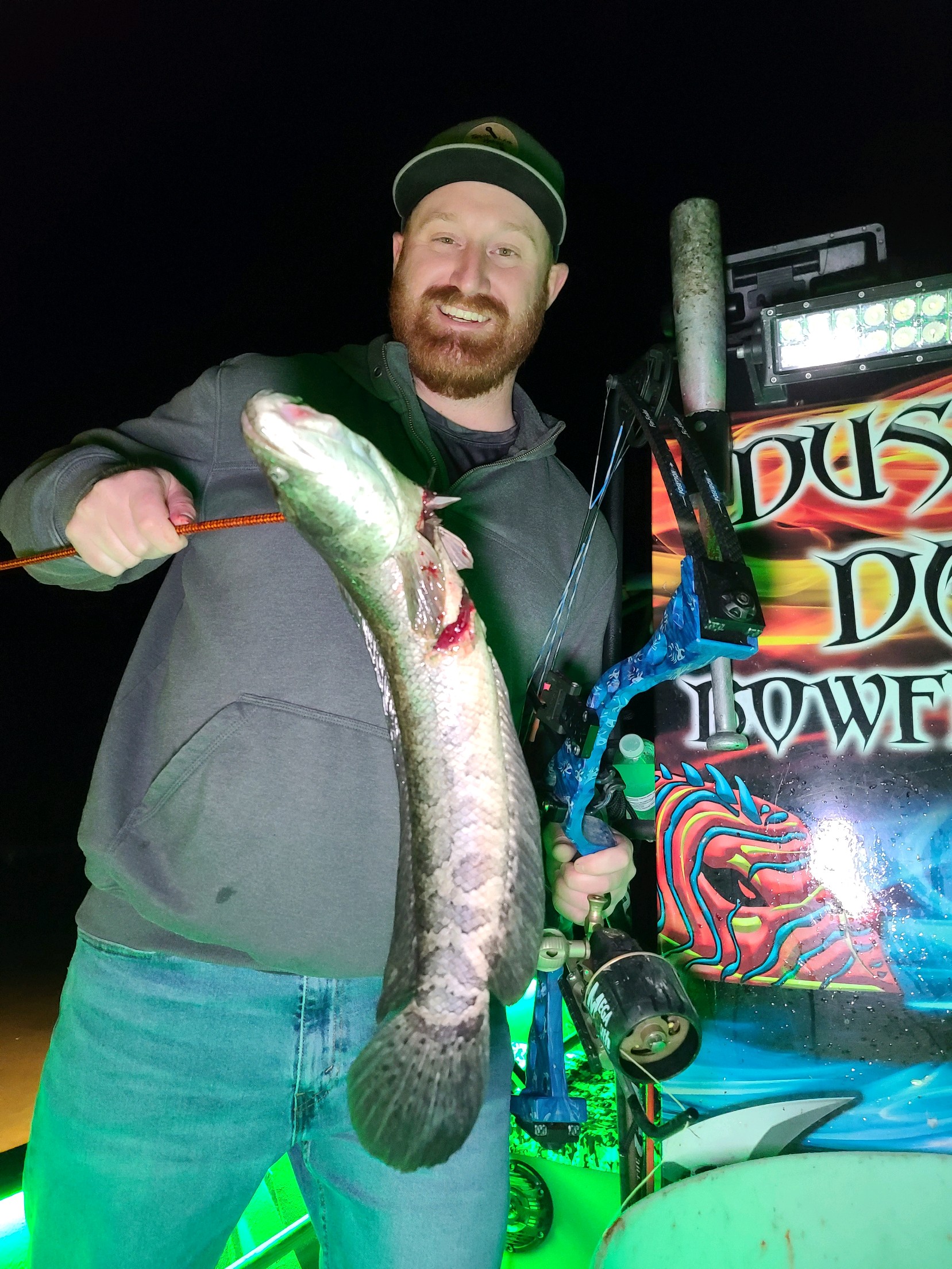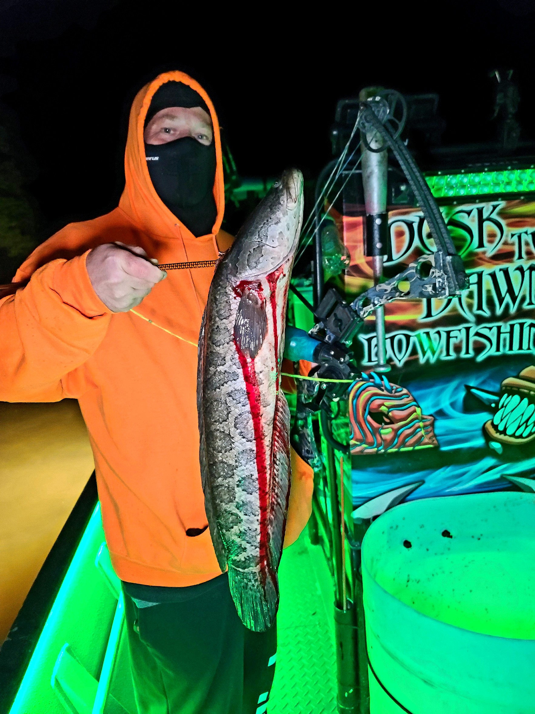 Captain Marc Spagnola of Dusk to Dawn Bowfishing has had some great fishing for his shooters lately with good action on snakeheads, gar up to 18 pounds, catfish and carp.