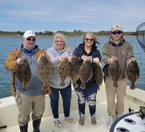 Flounder fishing in the back bay has been good in the clean water and today was another good day of fishing. Captain Jason Mumford of Lucky Break Charters had a great day with keeper flounder for everyone.