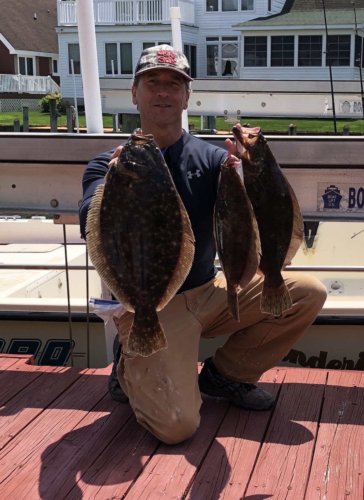 Kevin Welkner joined Budd Heim in the Thorofare yesterday in the Flounderin’ Around and had a good day with the flounder. Ken put fish of 17 1/2″, 19 1/2″ and 21 1/2″ in the box.
