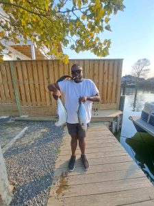 I had reduced the number of clients so I could fish everyone down a side and across the stern. Thought abundance would be less than when we’d begun my covid time off – it was.