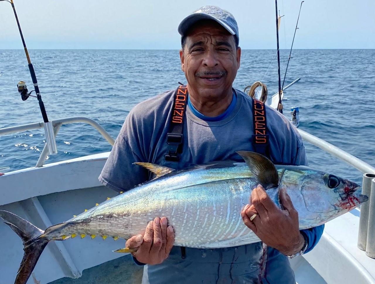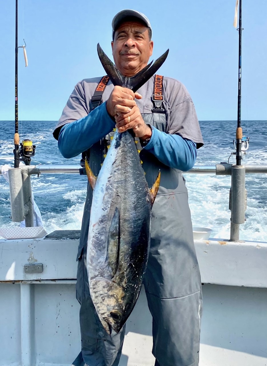 Captain Monty Hawkins of the Morning Star had a first on board his party boat today….a yellowfin tuna!