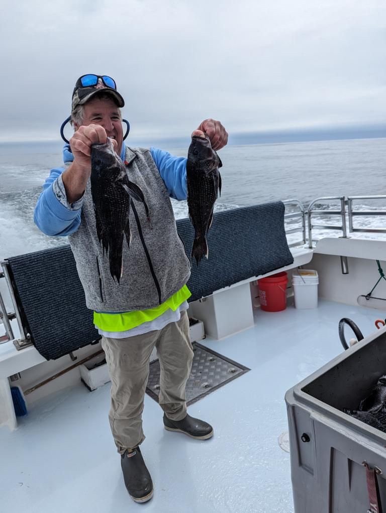 Tim Bunting and his crew fished with Captain Kane Bounds aboard the Fish Bound today and had a nine man limit of sea bass and were on the way back to the dock by 10:30!