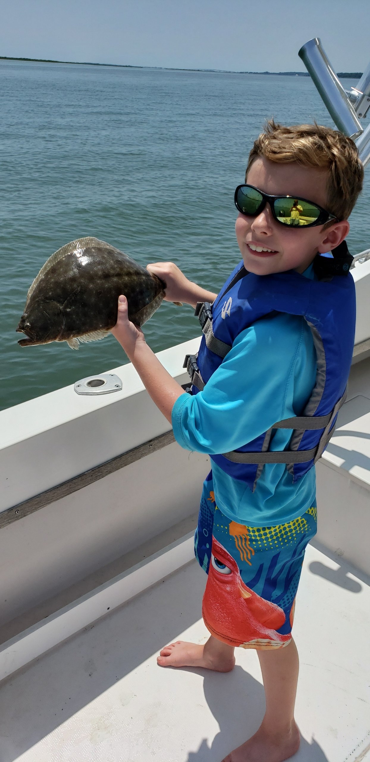 Brian Brannan and family had a great time flounder fishing over the 4th of July Holiday. One last trip produced a 19 1/2″ keeper for Brian and 9 year old Matthew just missed a keeper with a 16″ fish.