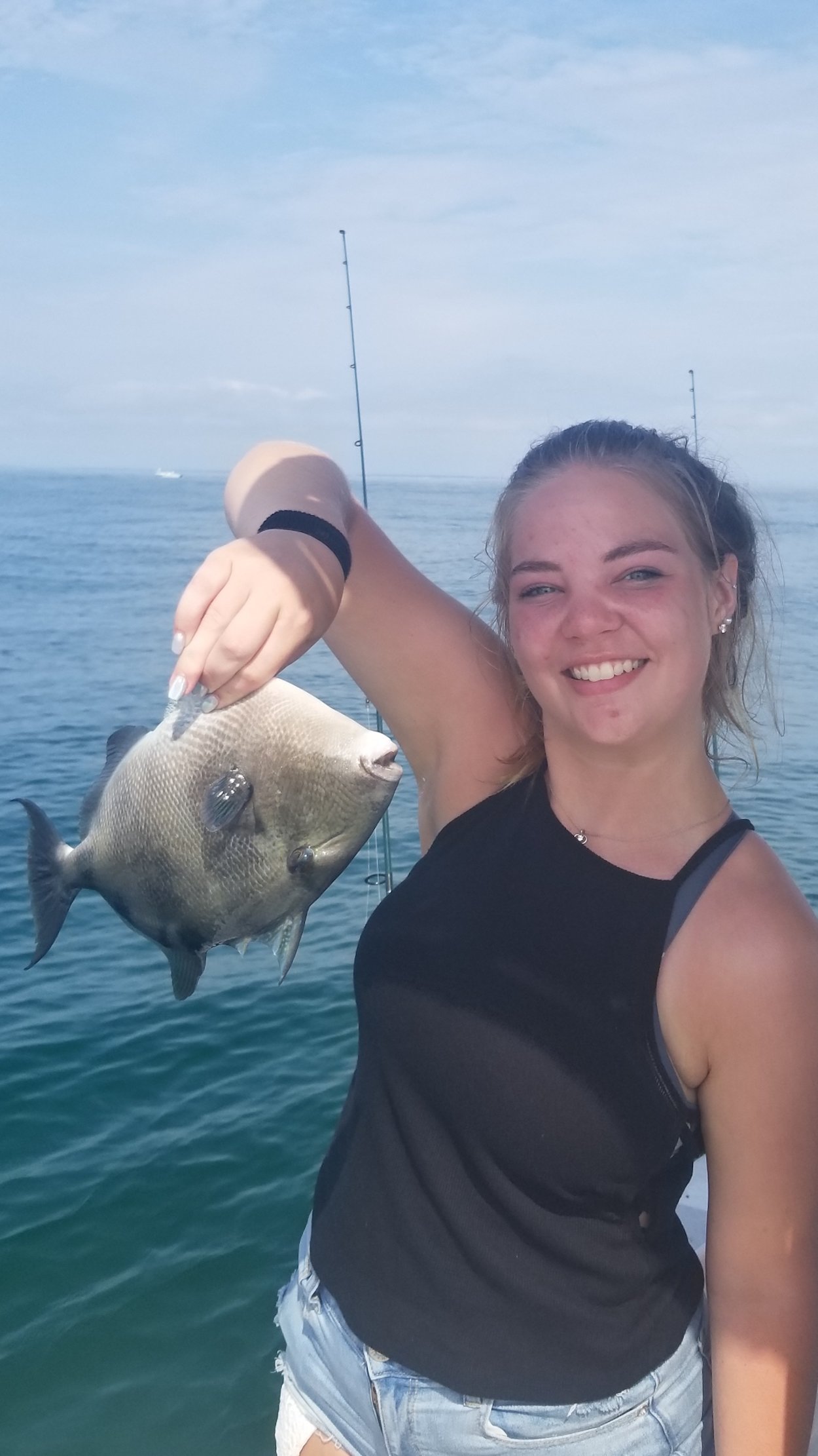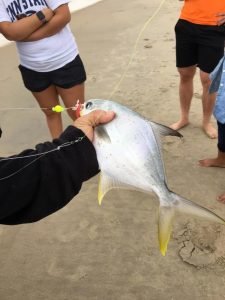 There have been several pompano caught in the surf in the past few days which is a rare occurrence for Ocean City. The Foote family has been catching a bunch of kingfish lately and yesterday Uncle Wayne landed a pompano and this morning Jill Foote landed another.