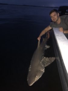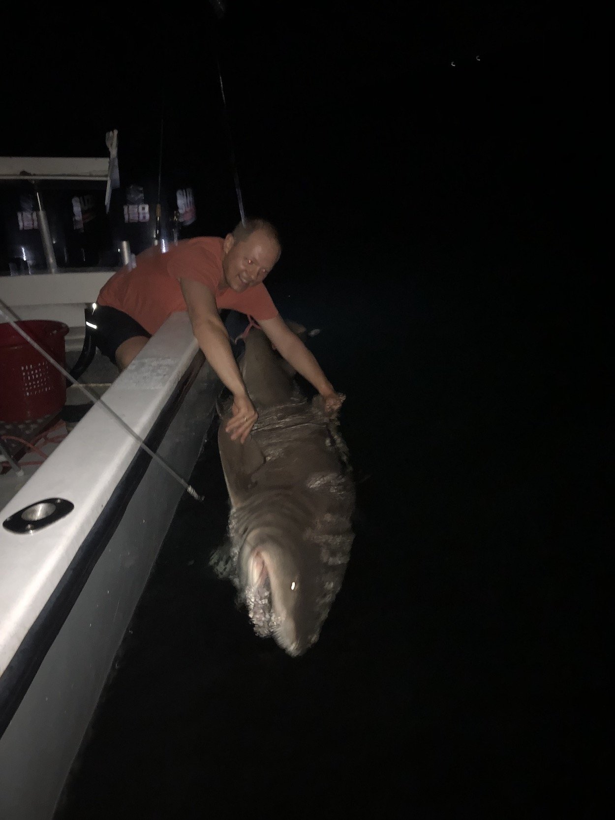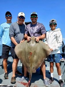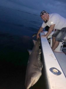 Captain Chase Eberle of Chasin’ Tides Charters reported in on two trips today that produced small rockfish, triggerfish and BIG shark releases.