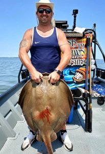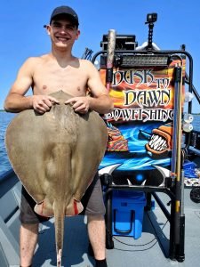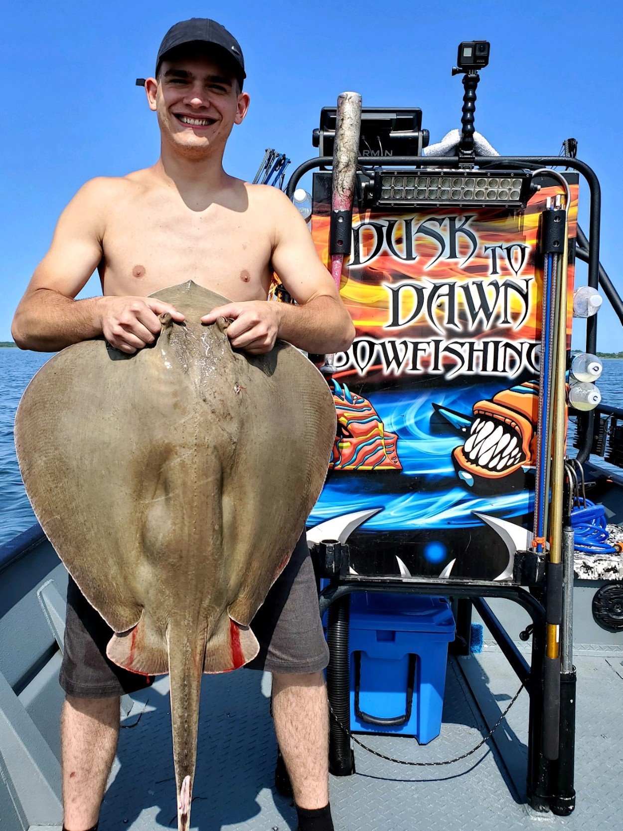 Captain Marc Spagnola of Dusk to Dawn Bowfishing was back out after yesterday’s deluge and was able to find some clean water and put his shooters on some good ray hunting.