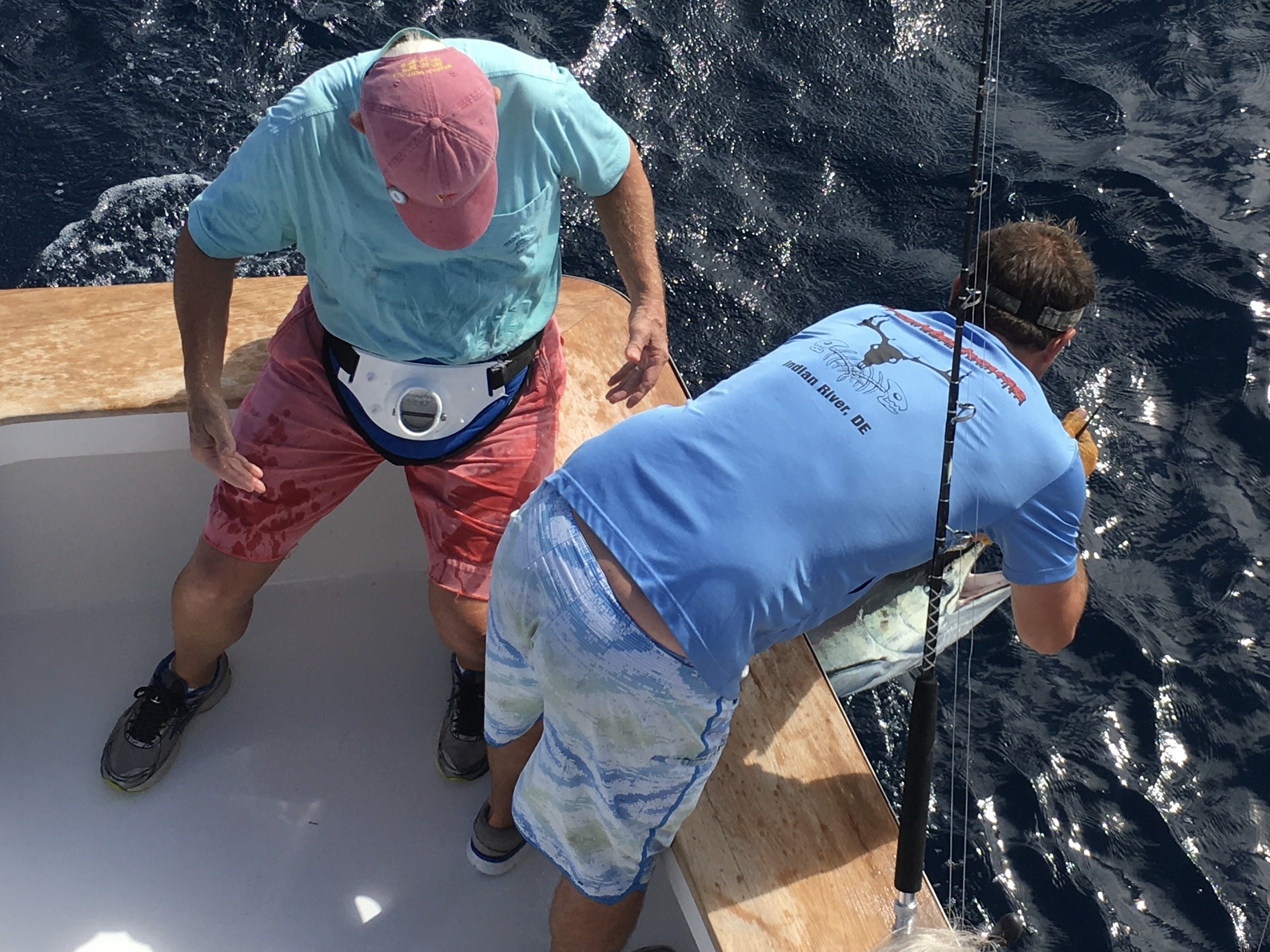 Larry Grabenstein and his crew had a fantastic day on the charter boat MARLI with Captain Mark Hoos and mate Mark Stephens. They boxed 31 mahi, released 3 white marlin and a big blue marlin in the Washington Canyon.