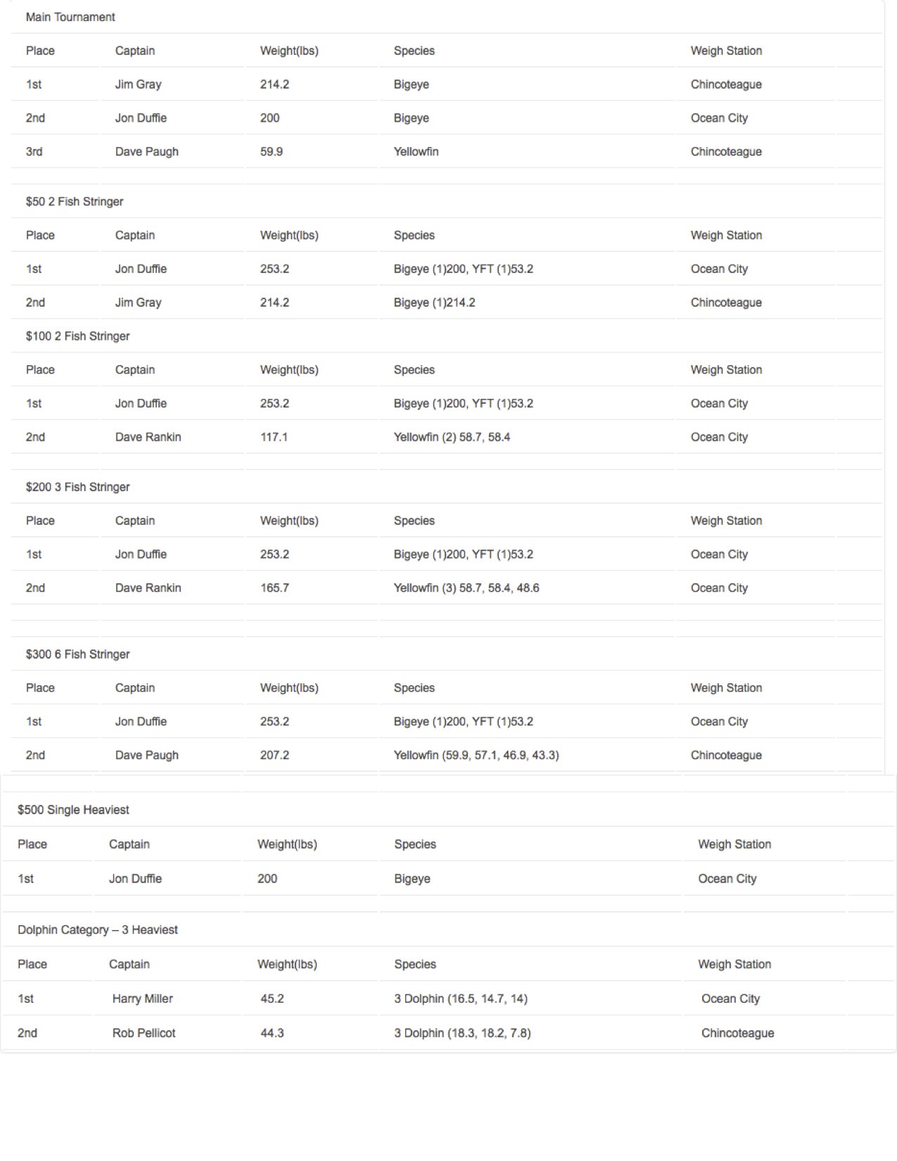 There were some big ole’ Tuna caught in the event and here’s how the results panned out.
