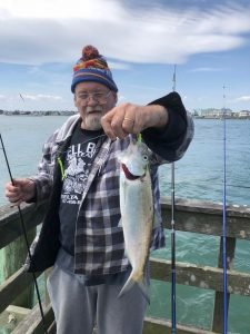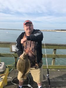 Things are picking up at the Oceanic Pier as the weather and water warm up. Bear reported that Steve from Oswego, NY caught the first keeper flounder of the season this morning on the pier when he reeled in this nice 20″er. Steve was using squid and finger mullet on the outgoing tide.