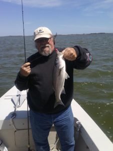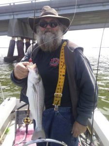 Bear and JJ have reported that there are lots of shad and rockfish being caught on the outgoing tide from the pier. Webmaster Bob Haltmeier caught and released 28 small rockfish last night in about :30 minutes. It was literally every cast with spec rigs. The fish are in the 15″ to 22″ size range. There are also loads of hickory shad being caught from the pier on the outgoing. Joe here caught a big one this morning.