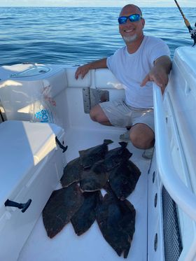 The ocean going party boat fleet was glad to get out to the fishing grounds today. Captain Chris Mizurak of the Angler took full advantage and put his anglers on some good fishing for flounder and sea bass.