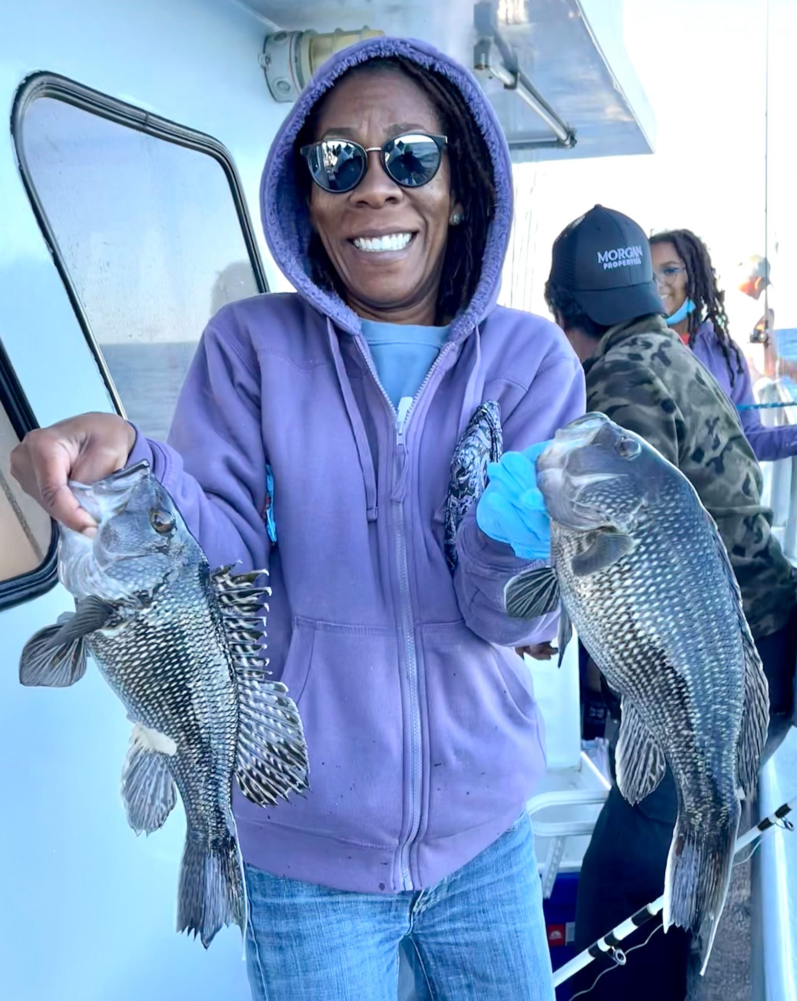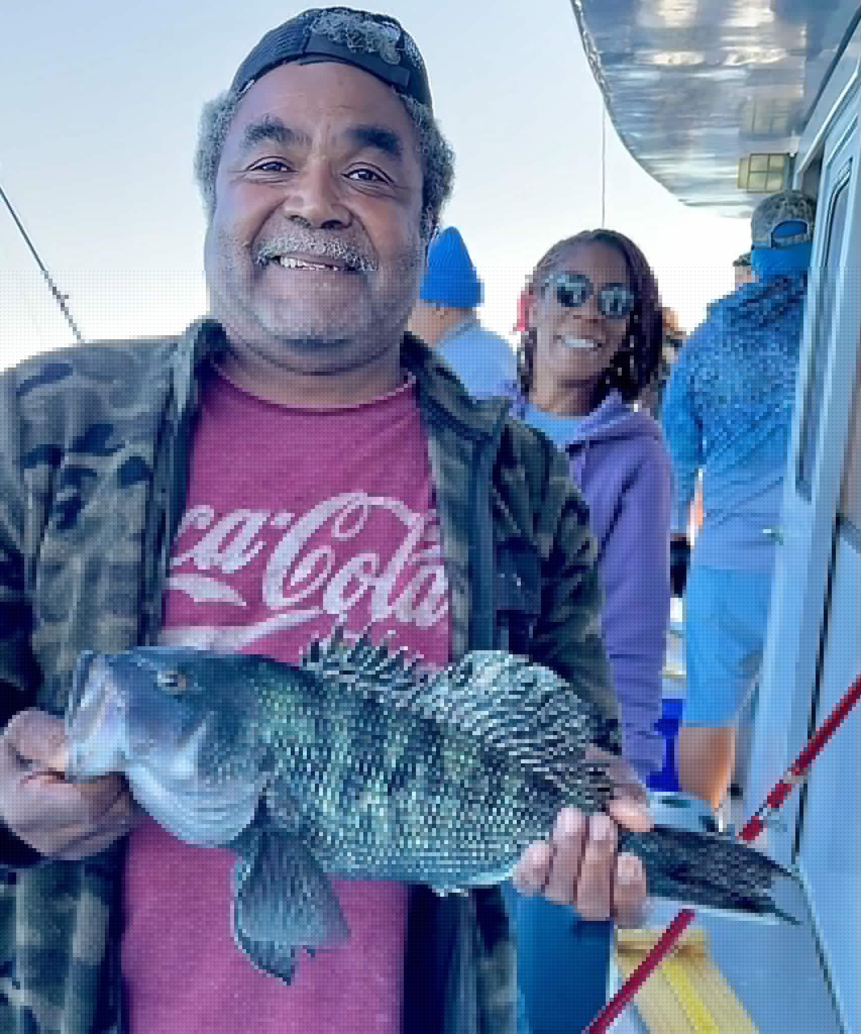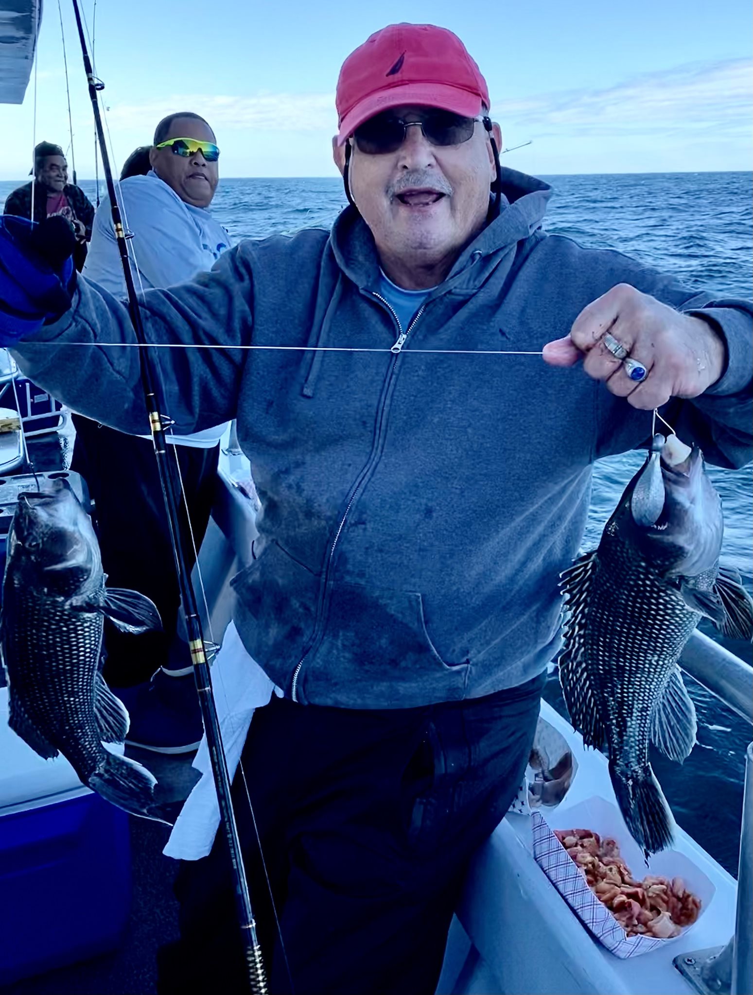 Found several pieces of bottom with cbass; couldn’t keep em chewing. Still had two folks but one shy of a limit. Sea Bass Bob snuck the pool into his pocket by a hair. It’ll be a while yet, but later in the fall they do keep biting. We’ll have more trips with ‘one stop shopping’ in late fall than any other time of year.