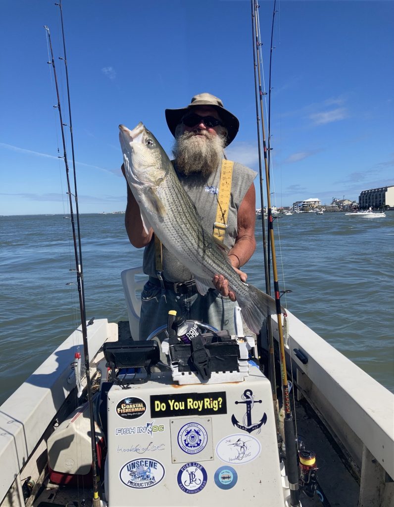 The bay was pretty crowded today thanks to the nice conditions, but there weren’t a ton of fish caught thanks to the doo doo colored water. Big Bird Cropper and Shawn Flaherty didn’t have any problem with the conditions though and caught themselves a bunch of rockfish. They released over 30 fish, one of which was this jumbo 37″ rock that ate a “dredged” Stretch lure. Unfortunately this fish was over the 35″ maximum size for rockfish so it was released.
