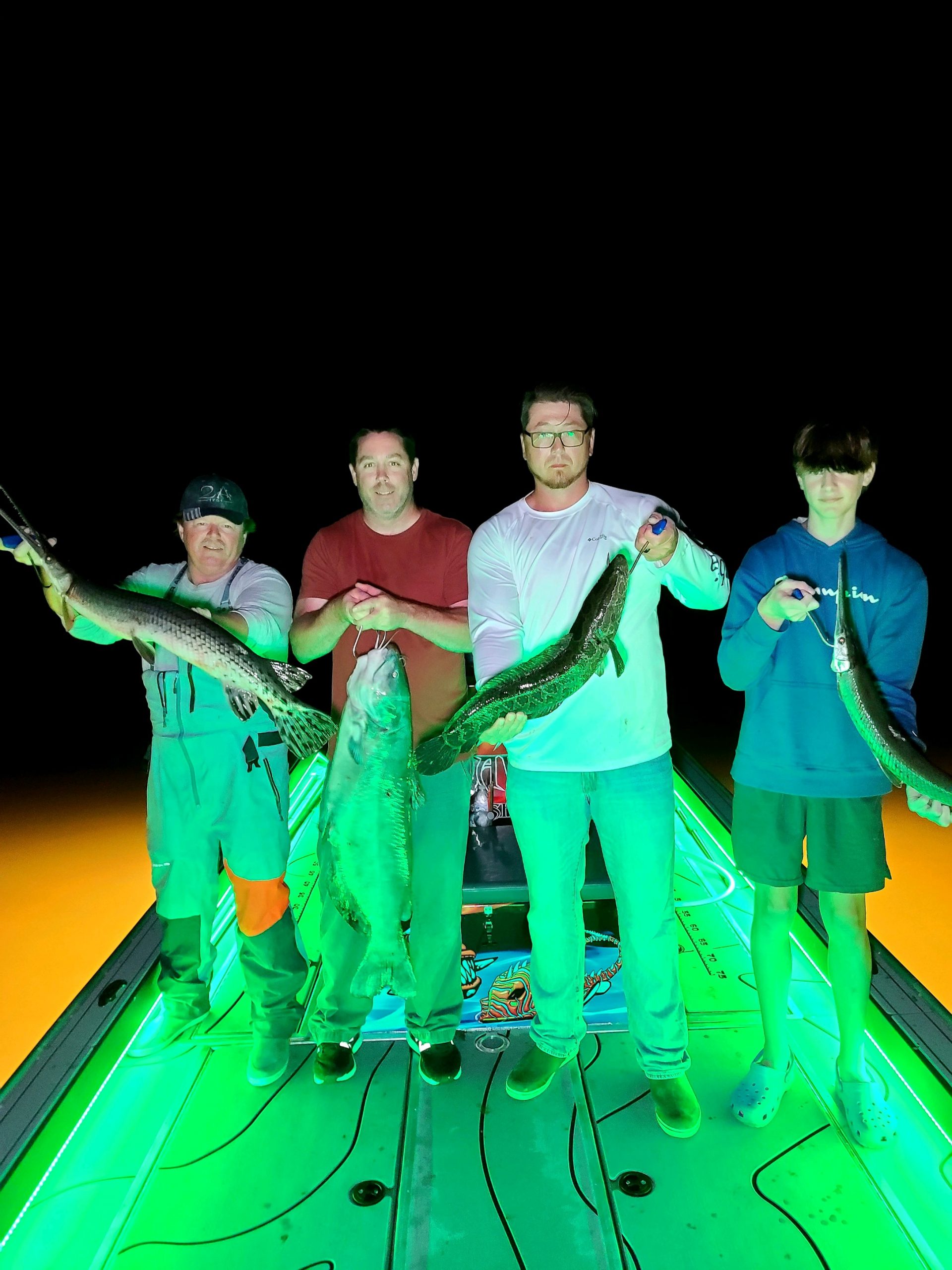 Captain Marc Spagnola of Dusk to Dawn Bowfishing is on the water again right now and he’s been on the water a lot the past few days. His shooters are having great luck with cow nosed and southern rays during the day and snakeheads, gar and some big catfish at night.