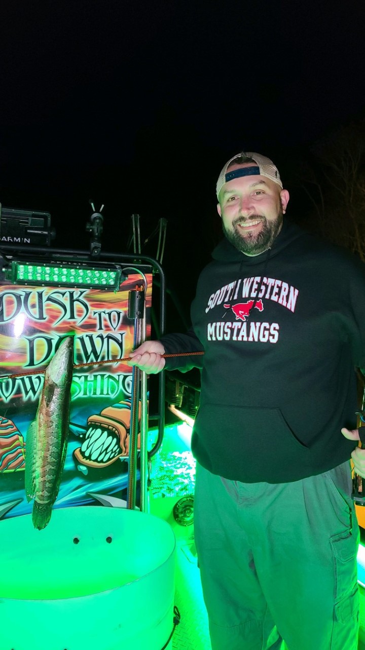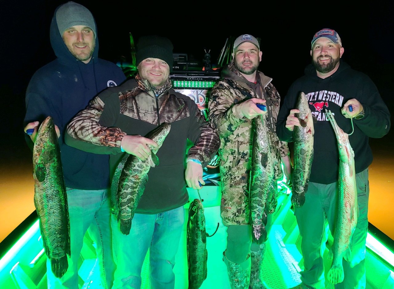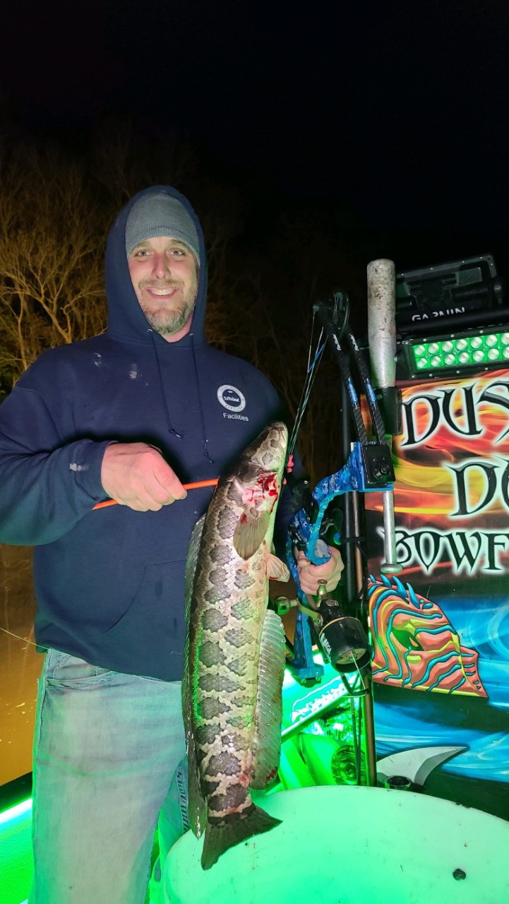 Captain Marc Spagnola of Dusk to Dawn Bowfishing is starting to burn the candle at both ends nowadays. Last night he had another great river trip with some quality snakehead and gar action.