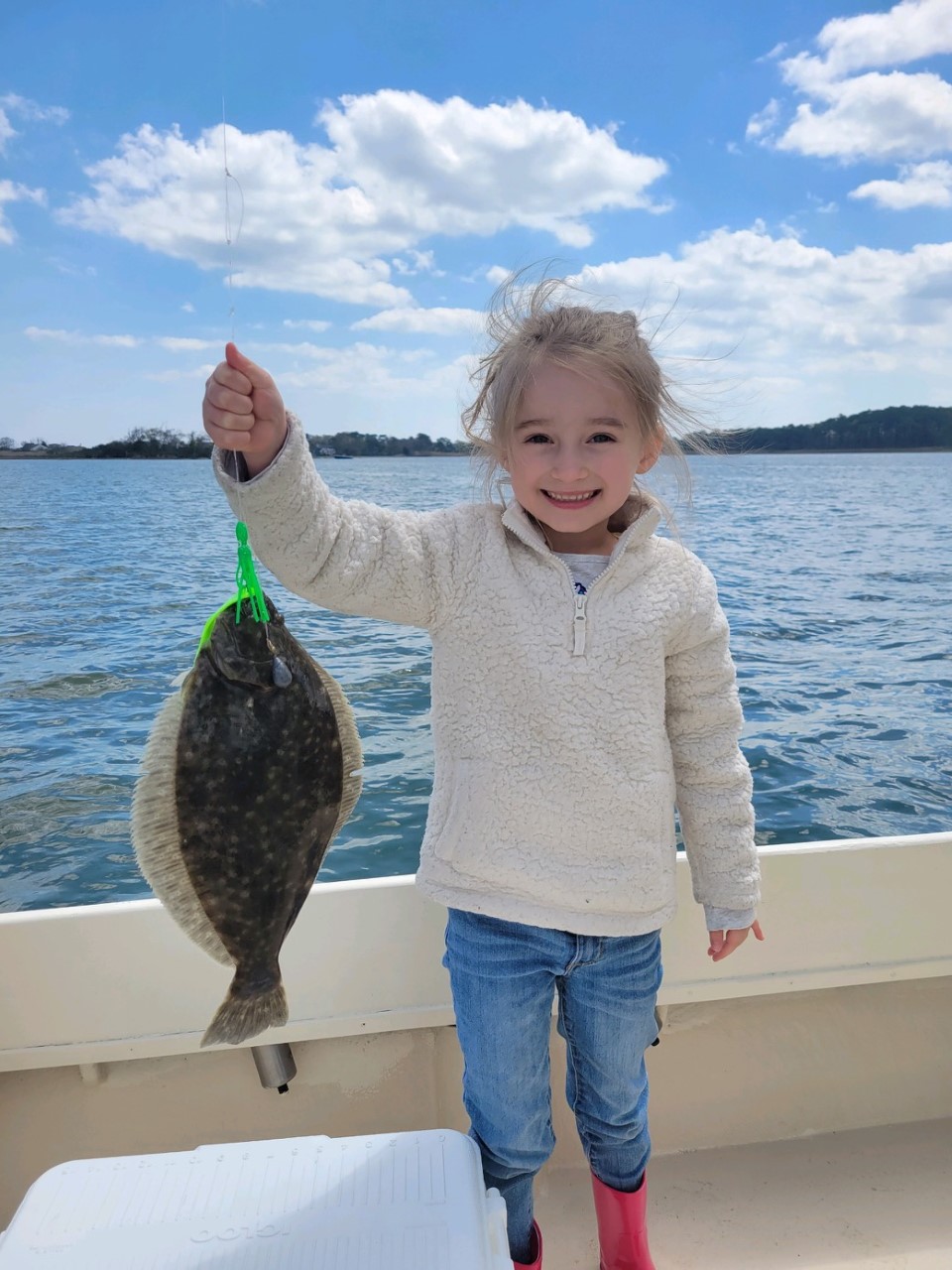 Speaking of flounder fishing, Captain Jason Mumford of Lucky Break Charters is back in the water and he put his first keeper flounder of the year in the boat today. It also just happened to be the first keeper flounder for young Serenity Boarts who was fishing on Lucky Break with her family today.