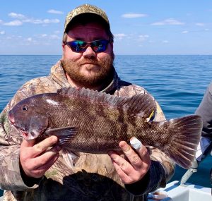 Captain Chase Eberle of Chasin’ Tides Charters had an insane day of tautog fishing today and added several numbers to his double digit tautog count when he had a five person limit of double digit fish.