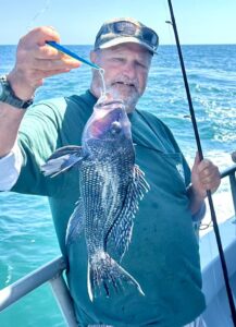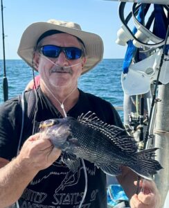 Sea Bass Bob stuck with his favorite technique and climbed into double digits; had a nice grade of fish on the jig too.