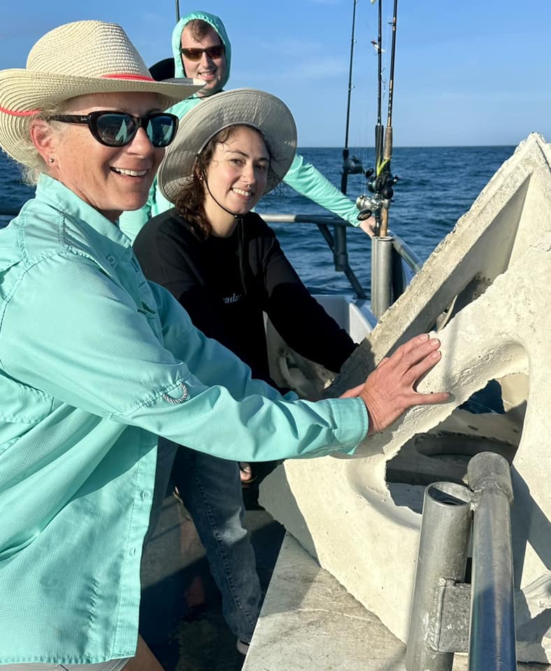 Stopped at Capt. Bobby’s Reef yet again, this time for stedfast reef volunteer Sandra and Nicole to deploy four pyramids from Bear Materials. A cement plant, their donations of time and material–from Kinsley Construction up in York PA too, have made the bulk of our pyramid units so far. Then there’s Gillis Gilkerson, and now Harkins Concrete just up the road starting to pitch in. These 4 piece molds are super simple to assemble – designed for a busy yardman to handle. We’ll gladly expand the program if you know of other cement plants that wish to make a difference in water quality and fishing’s future.