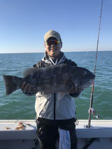 Ryan Bodley , an OC local, (Grundens gear) was boxed-out in 27 minutes. He went on to send the crew home with a few too, plus won the pool with a jumbo of 21 inches.