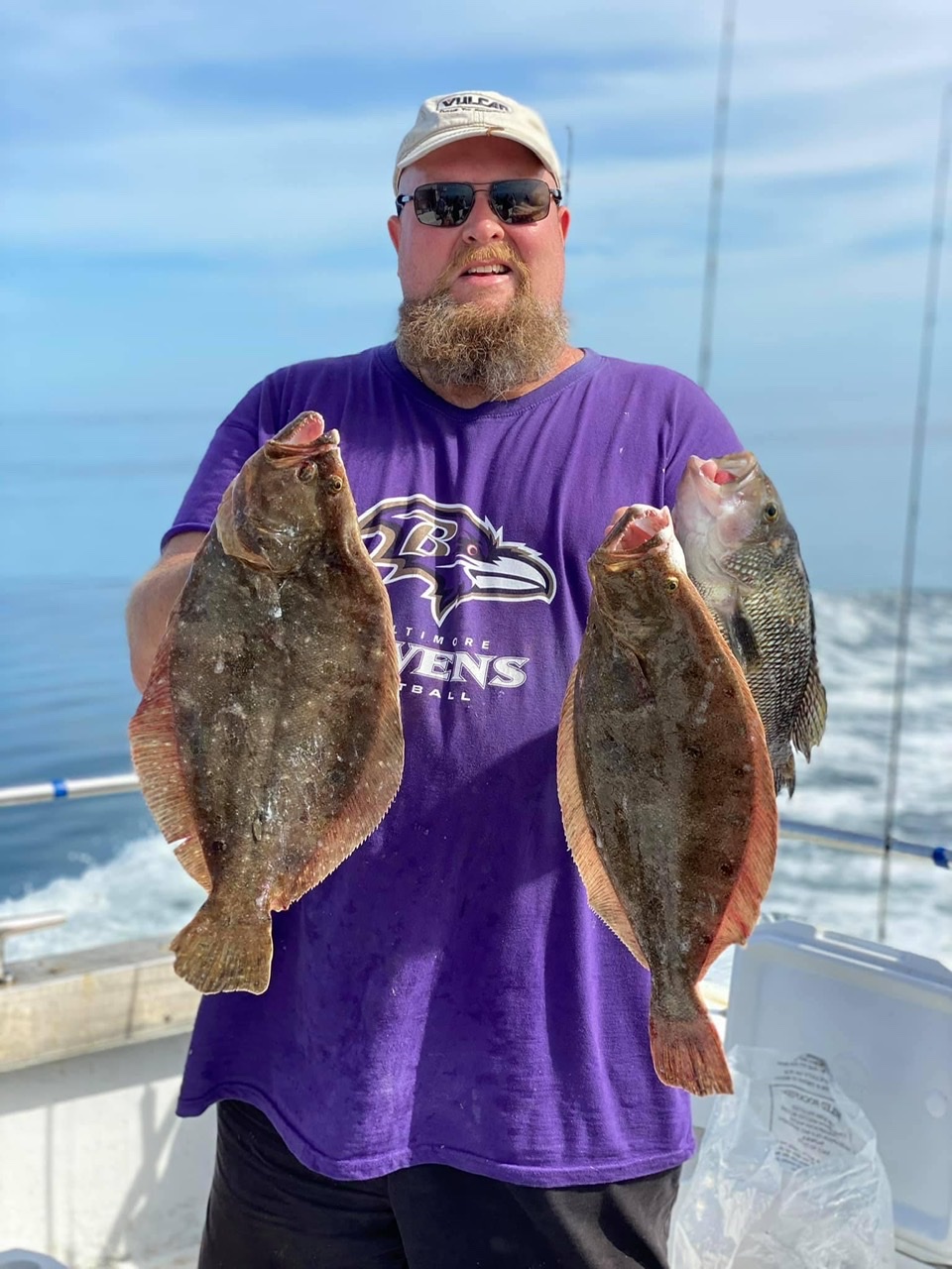 Ocean bottom fishing was good again and very enjoyable in flat calm seas. Captain Chris Mizurak of the Angler had a great day for his anglers with flounder, sea bass and triggerfish on today’s trip.