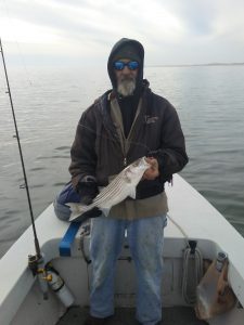 Captain Chase Eberle of Chasin’ Tides Charters got in on the rockfish trolling action today and tricked this keeper into the box.
