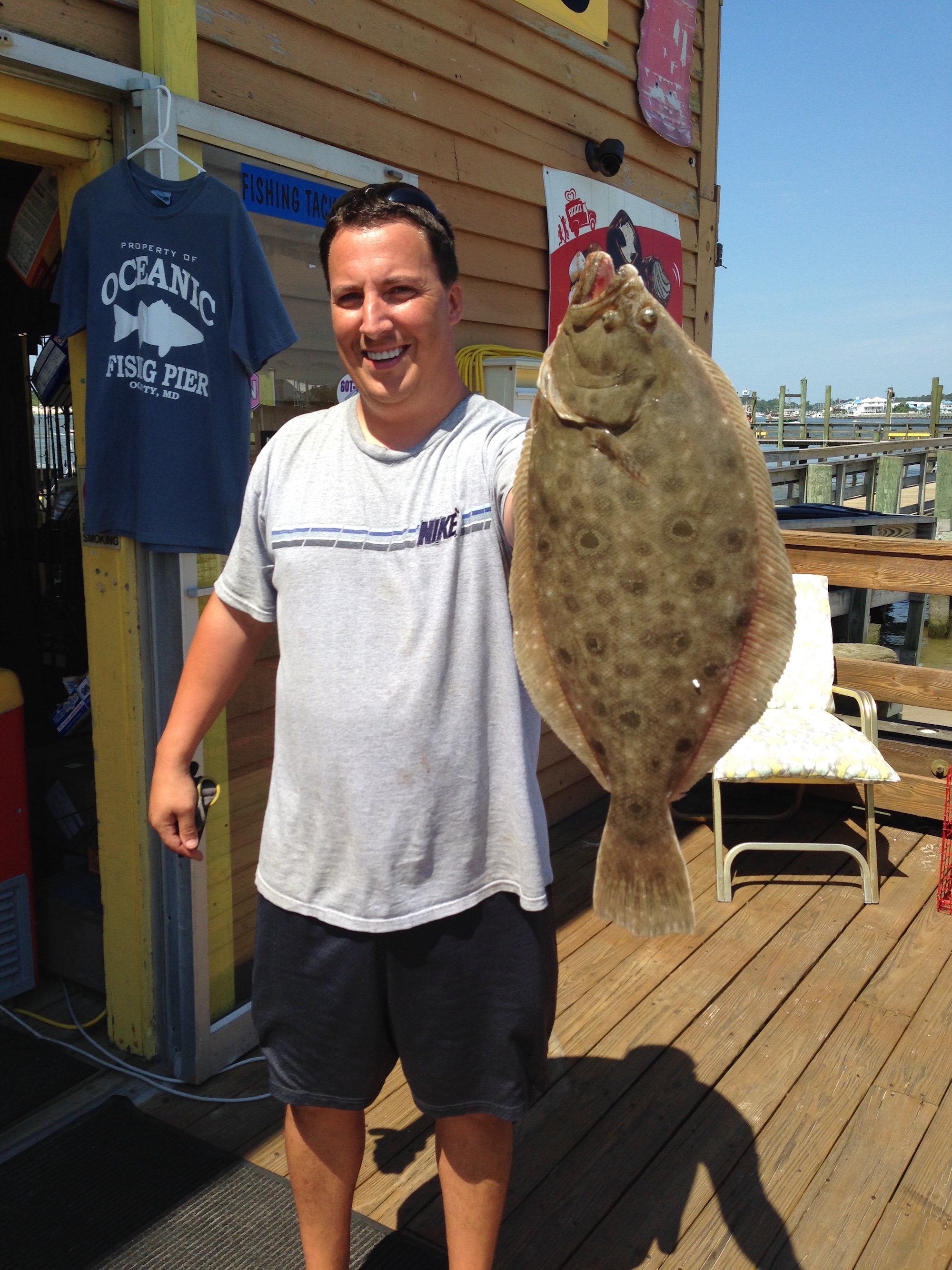 Bear down at the Oceanic Pier sent in a picture of a nice flounder caught on the pier this morning.  John from NJ caught this 22″ keeper this morning on a live minnow.