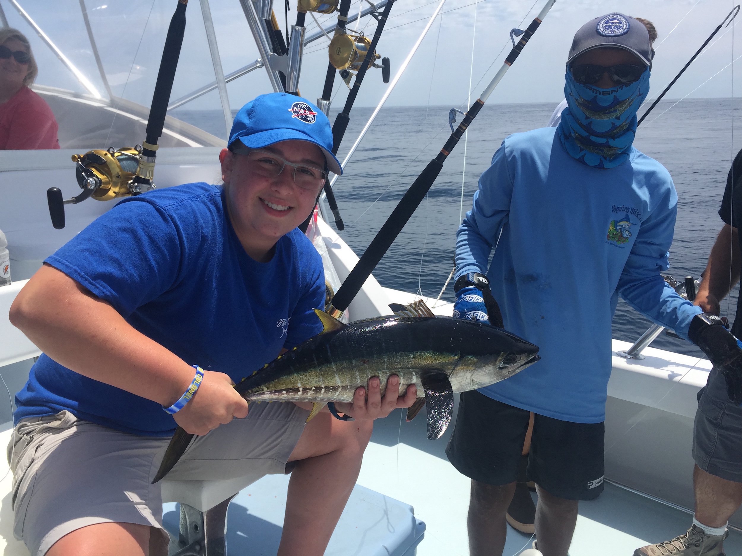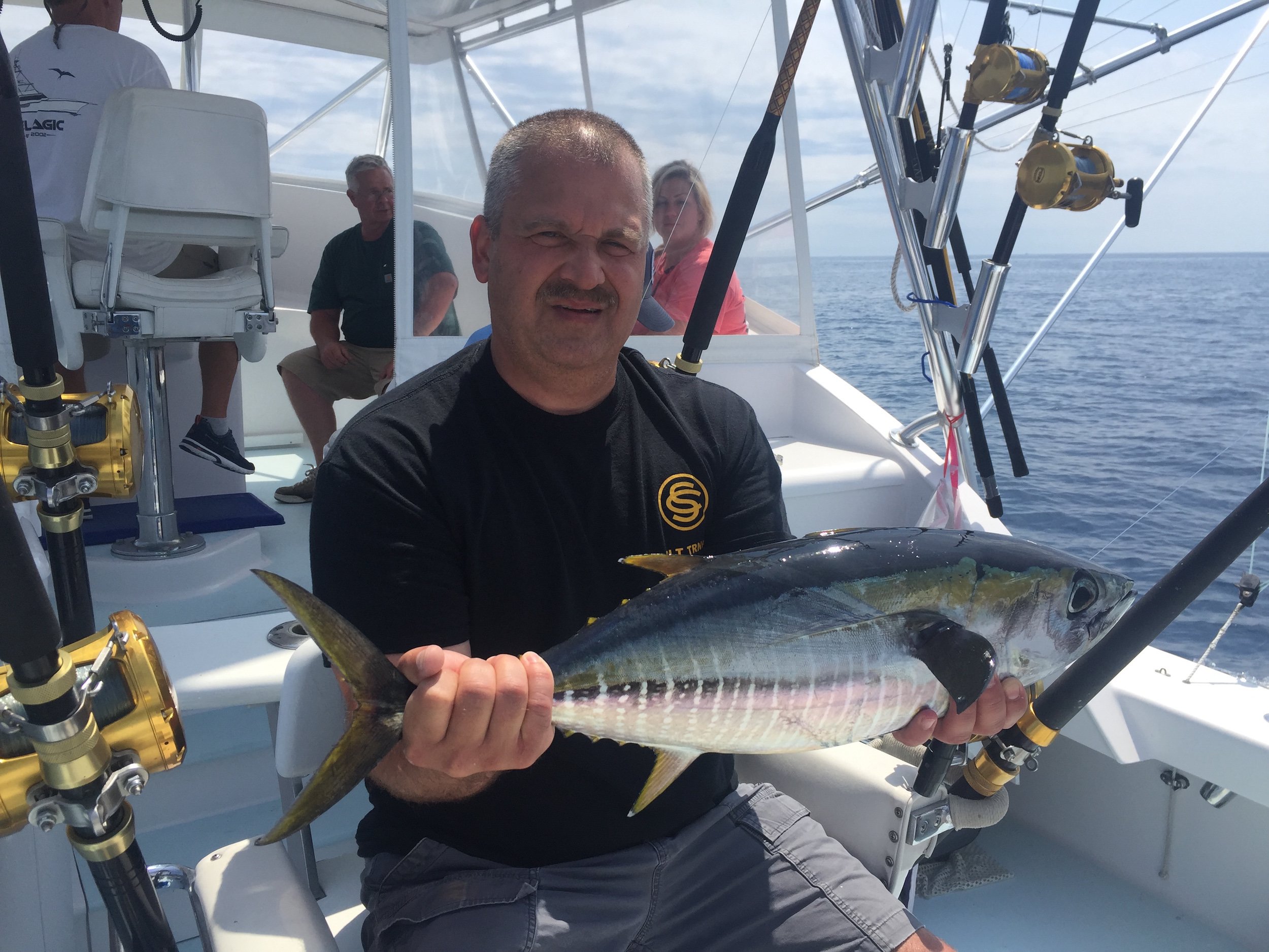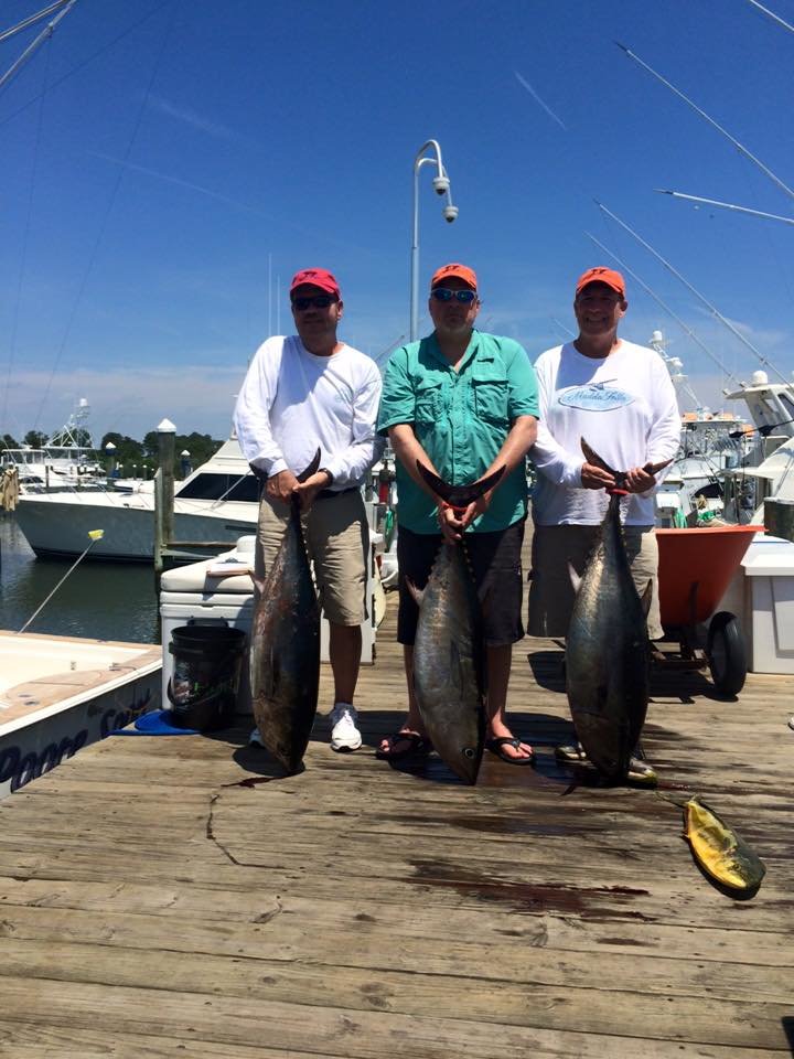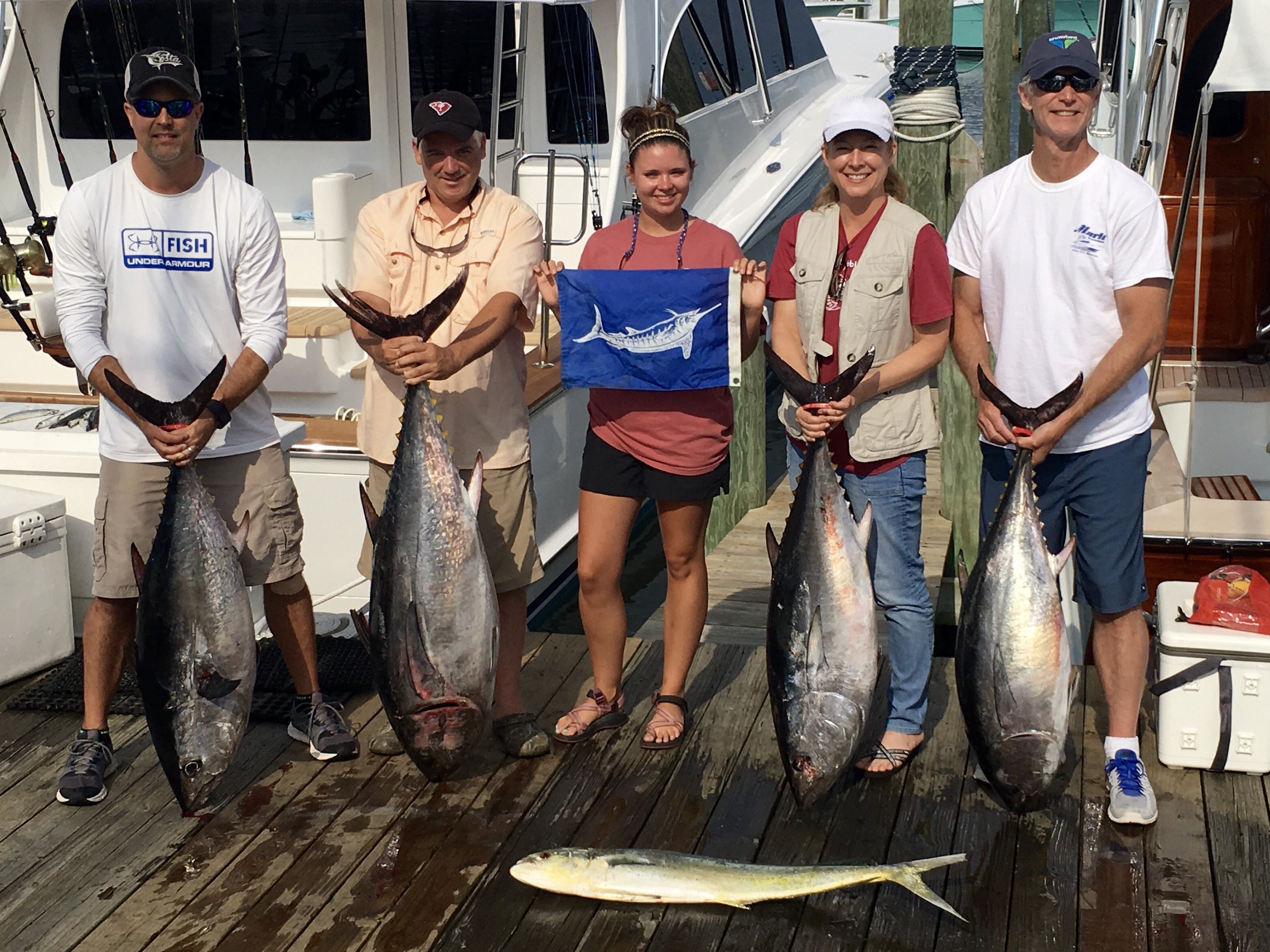 The Marli with Captain Mark Hoos was one of the boats that got it done.  Leigh Ann Lehmon from South Carolina caught and released her very first white marlin today on the charter boat MARLI with Captain Mark and mate Mark Stephens. Leigh Ann and her crew also caught their limit of bluefin tuna, a gaffer dolphin and released another dozen undersized yellowfin tuna.
